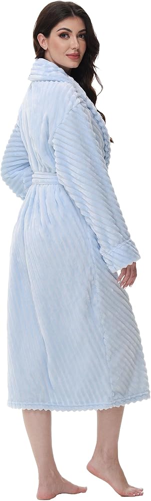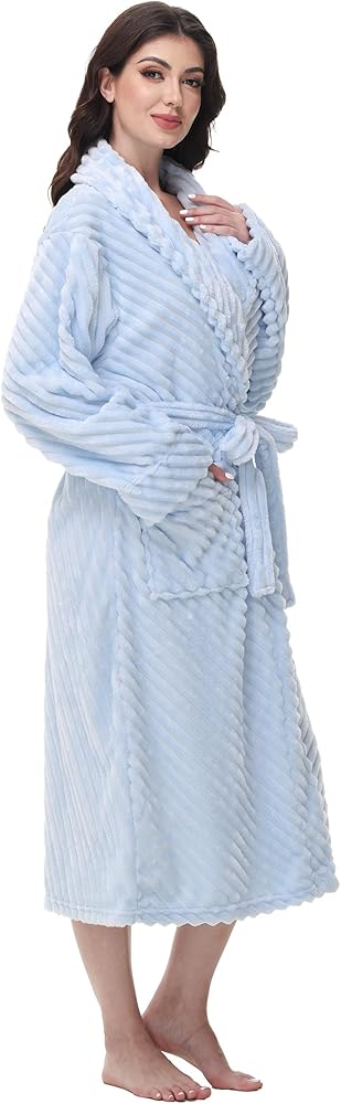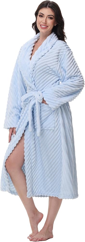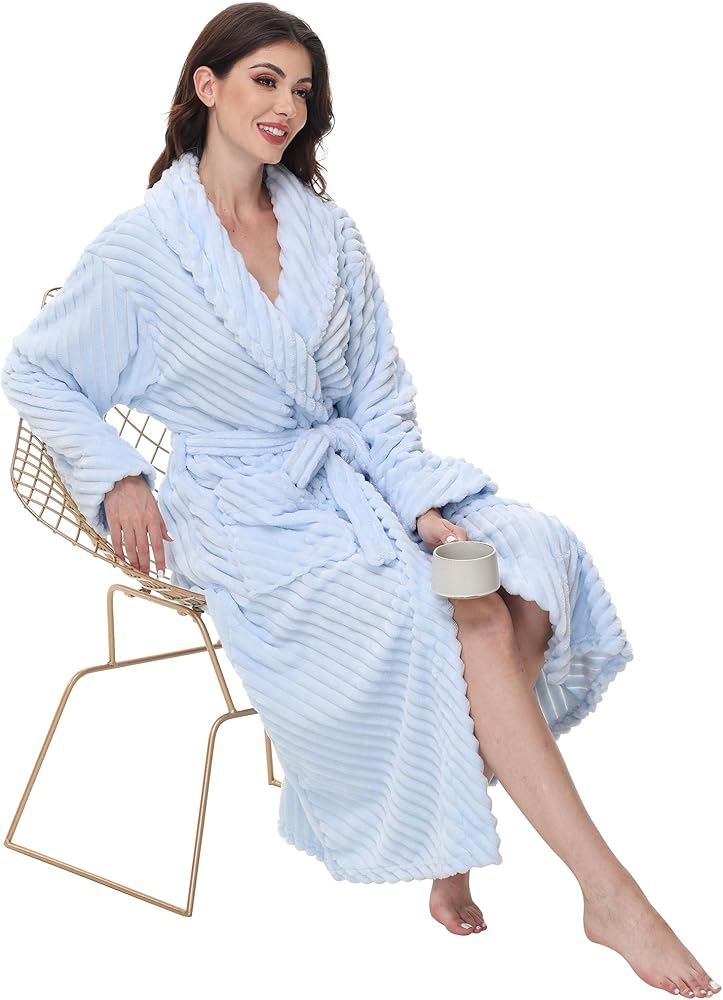 أنيق ومريح: يضيف النمط المخطط الكلاسيكي أناقة إضافية على الرداء. توفر نعومتها الرقيقة والمريحة للغاية أقصى درجات الراحة طوال العام.