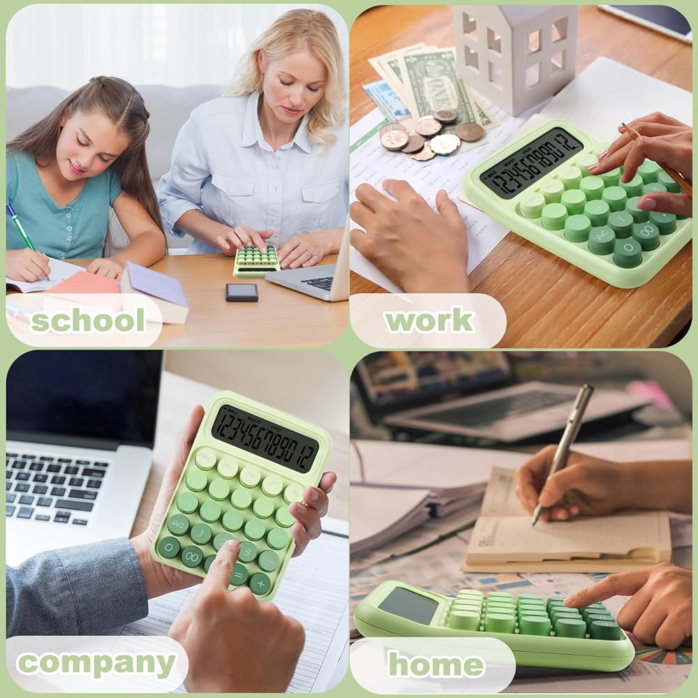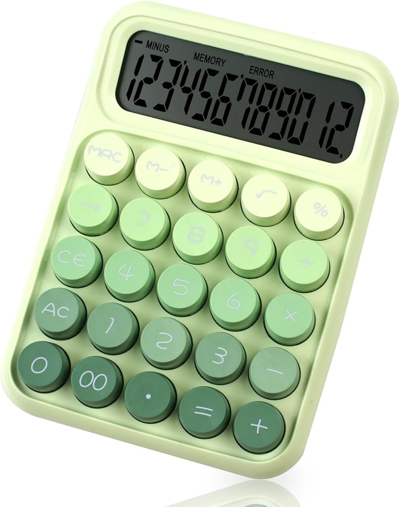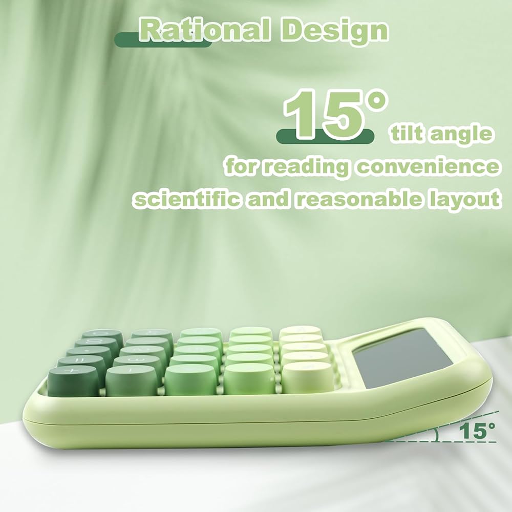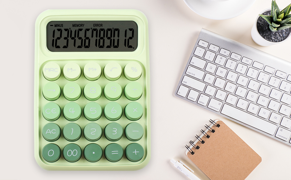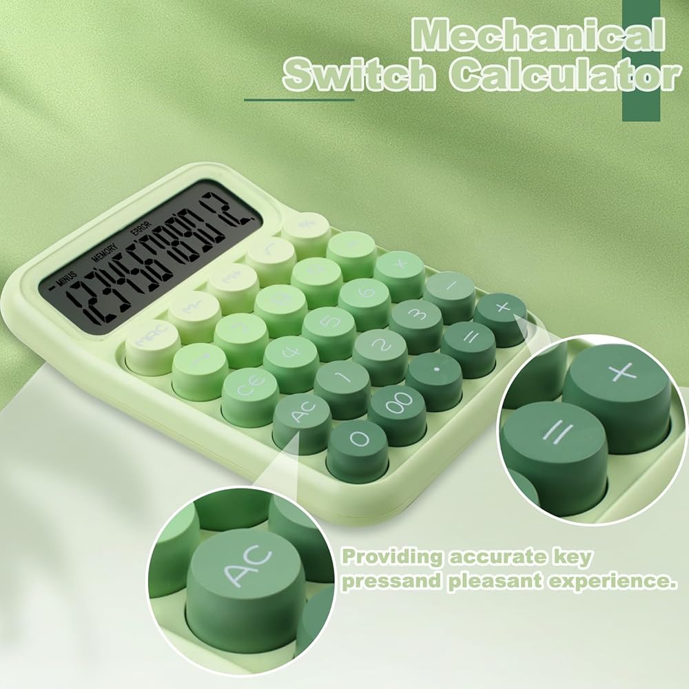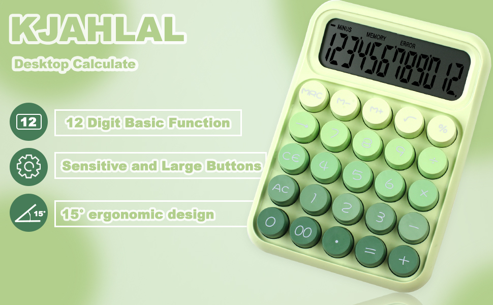 آلة حاسبة ميكانيكية بزر ضغط، شاشة LCD كبيرة مكونة من 12 رقمًا، أزرار كبيرة سهلة الضغط للاستخدام كآلات حاسبة مكتبية، زر كبير للكمبيوتر باللون الأخضر الغاب للمدارس والمنازل والشركات