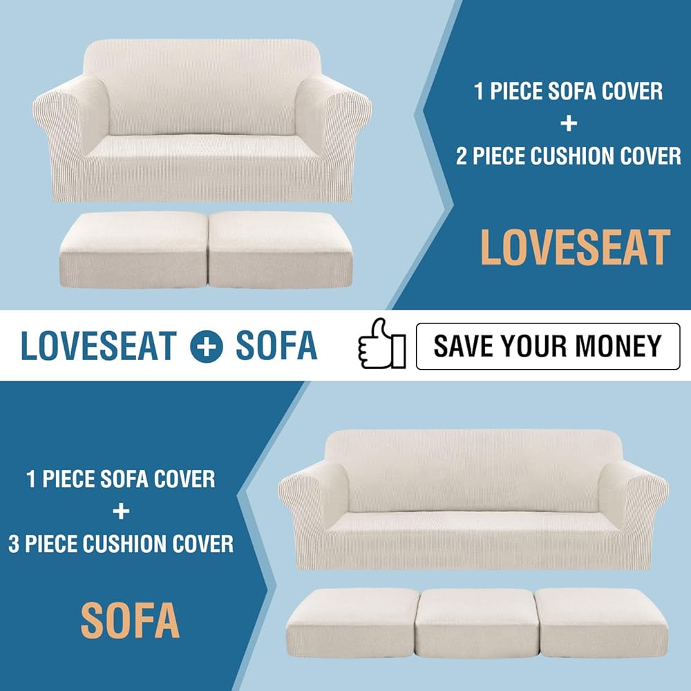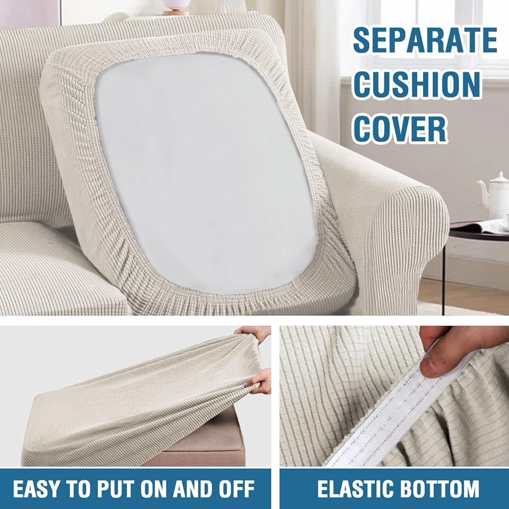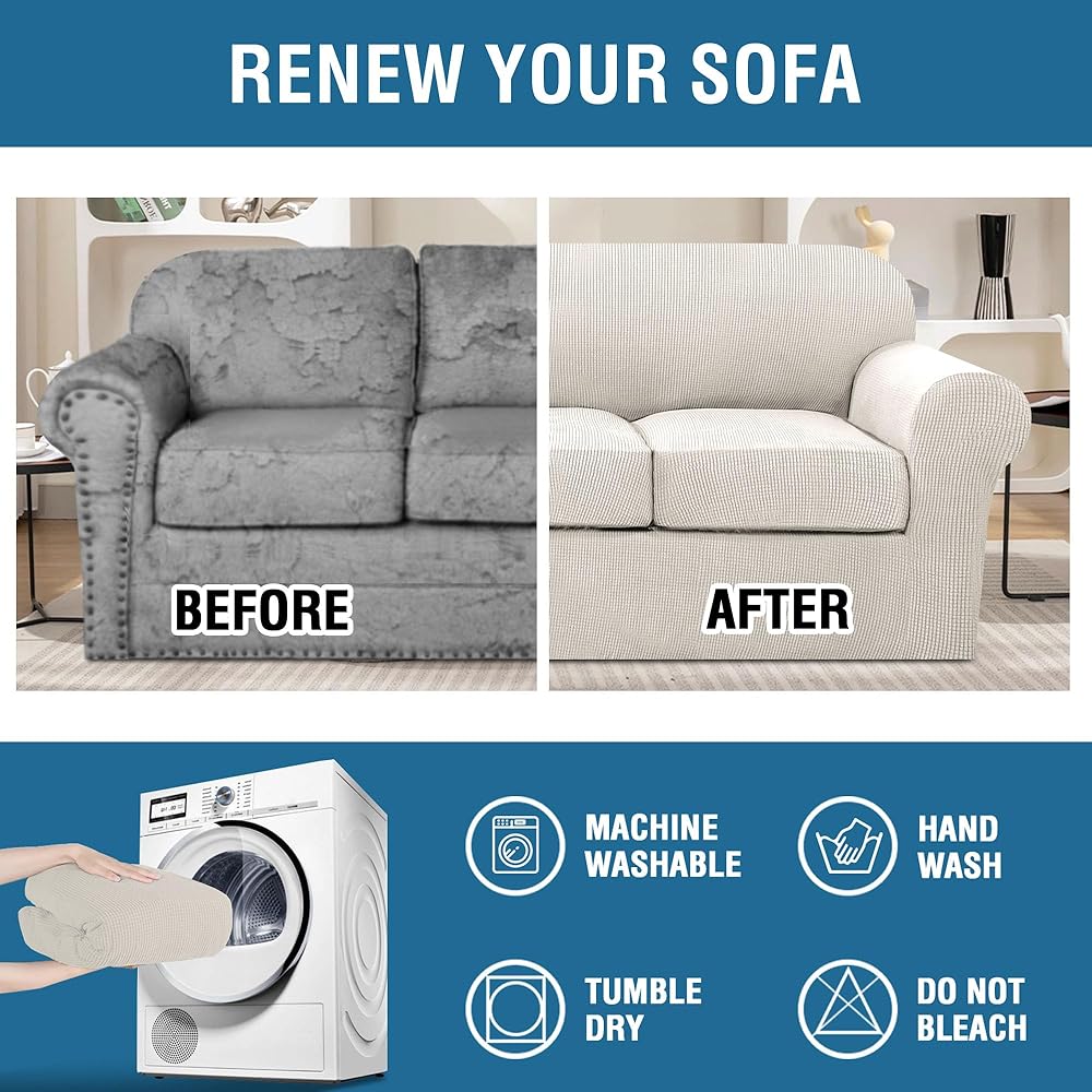 نسيج متين وعالي الجودة: الأغطية الانزلاقية مصنوعة من قماش جاكار عالي الجودة متين ويدوم طويلاً. القماش منسوج بإحكام، مما يجعله مقاومًا للتمزق والعقبات، ويمكنه تحمل البلى والتمزق اليومي. بالإضافة إلى ذلك، يمكن غسل القماش في الغسالة، مما يجعل تنظيفه وصيانته سهلاً