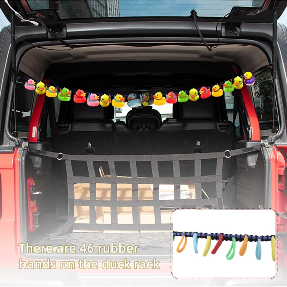 Bright ribbons: The duck holder uses various colorful small rubber bands to tidy up the ducks while also making the car look unique.