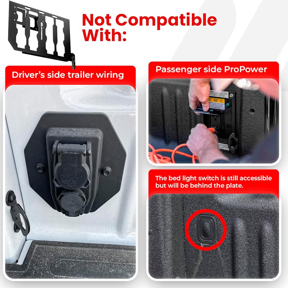 • Fitment - Trailer Wiring and ProPower: Fits Ford Boxlink mounts on all 2017+ Super Duty's. The driver's side is not compatible with fifth-wheel trailer wiring. The passenger side is not compatible with ProPower on 2023+ models.