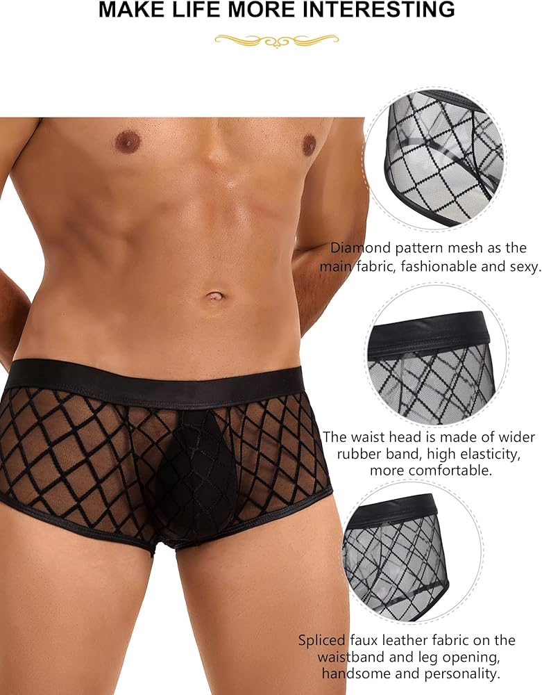 هدية مثالية لأحبابك - مثالية للإيماءات الرومانسية، هذه الملابس الداخلية المثيرة للرجال تمثل أيضًا هدية مدروسة لصديقك أو زوجك أو أي شخص مميز في حياتك يقدر الراحة ولمسة من الأسلوب المرح. اختر من بين مجموعة الملابس الداخلية الرجالية الشبكية الدقيقة القابلة للتنفس للحصول على بديل فريد ومثير ومسامي.