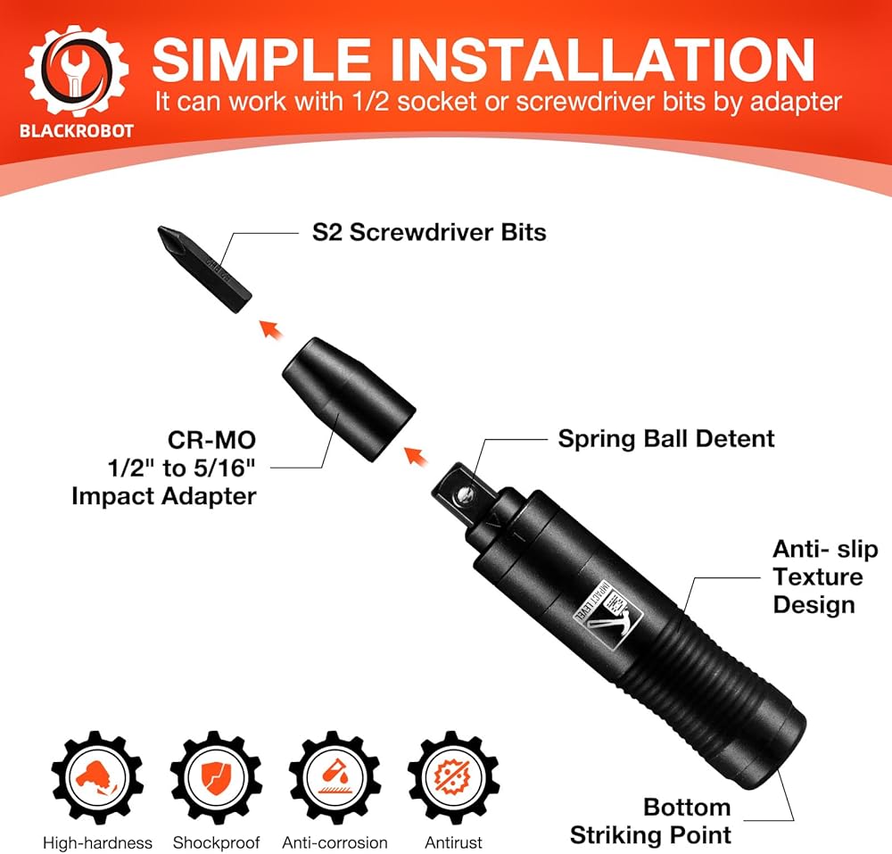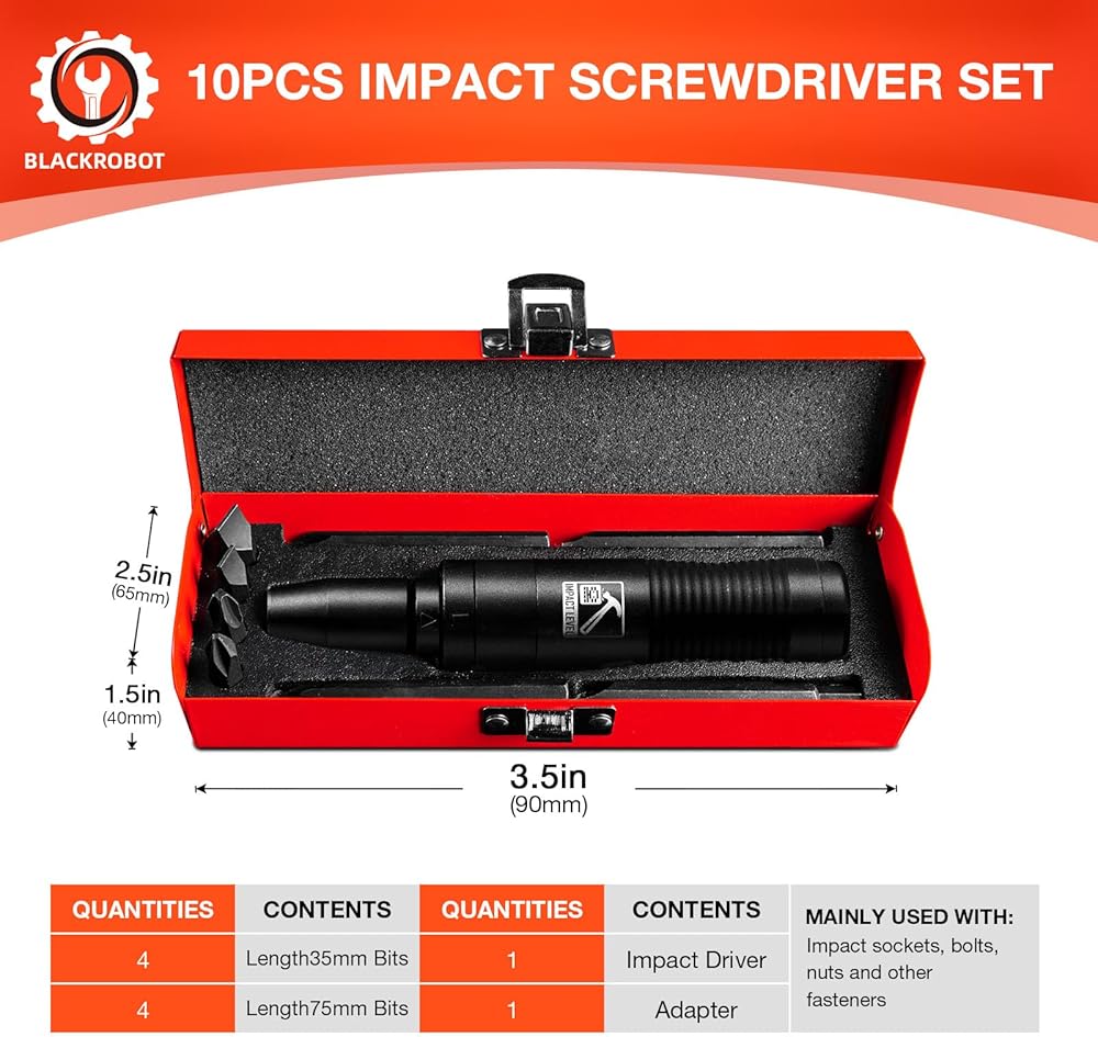 【ضمان الجودة والخدمة】تتضمن المنتجات التي استلمتها علبة تخزين، وقطع فولاذية s2، ومفك للصدمات. نحن نقدم ضمانًا شاملاً للمنتج، وBLACKROBOT لديها خدمة ما بعد البيع على مدار 24 ساعة وضمان لمدة عام واحد. إذا كان لديك أي أسئلة، يرجى الاتصال بنا على الفور.