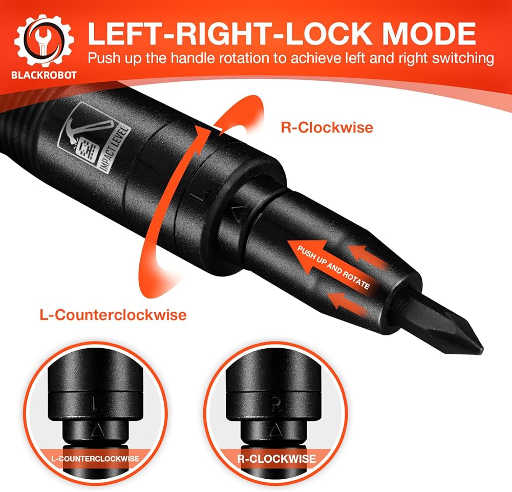 【بدون مجهود وموفر للوقت】يمكن لمفك الصدمات تطبيق القوة بشكل فعال لتوفير عزم دوران أكبر، مما يجعل من السهل شد أو فك البراغي. من خلال تطبيق القوة لأسفل بشكل مستمر على صنبور مفك الصدمات، يمكنك بسهولة فك المثبتات الصدئة أو البراغي المجمدة. .