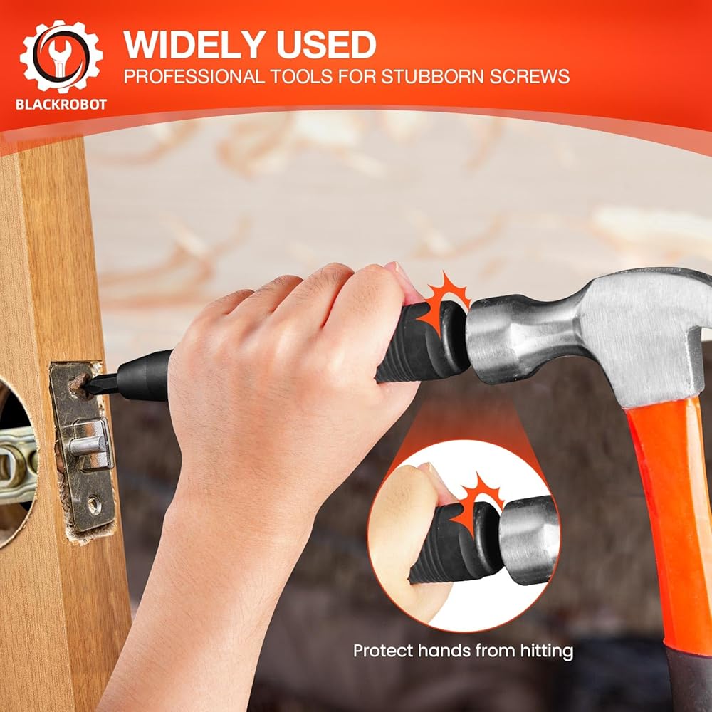 【مادة CR-V وفولاذ S2】يستخدم مفك البراغي ذو التأثير اليدوي لدينا متانة فولاذ CR-V للبناء والقوة الفائقة للفولاذ S2 للقم. توفر مادة CR-V قوة وصلابة عالية. توفر اللقم الفولاذية S2 قوة وصلابة استثنائية. يوفر هذا المزيج من المواد الفولاذية CR-V وS2 حلاً موثوقًا وطويل الأمد لمختلف التطبيقات.
