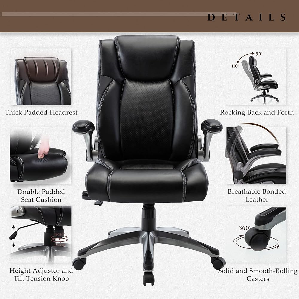 【مساند للذراعين قابلة للطي】يمكن دفع كرسي المكتب التنفيذي المصمم بمساند للذراعين القابلة للطي أسفل أي طاولة أو مكتب. عملي للغاية للتخزين وتحسين المرونة لتوفير المساحة، ممتاز للعمل من المنزل