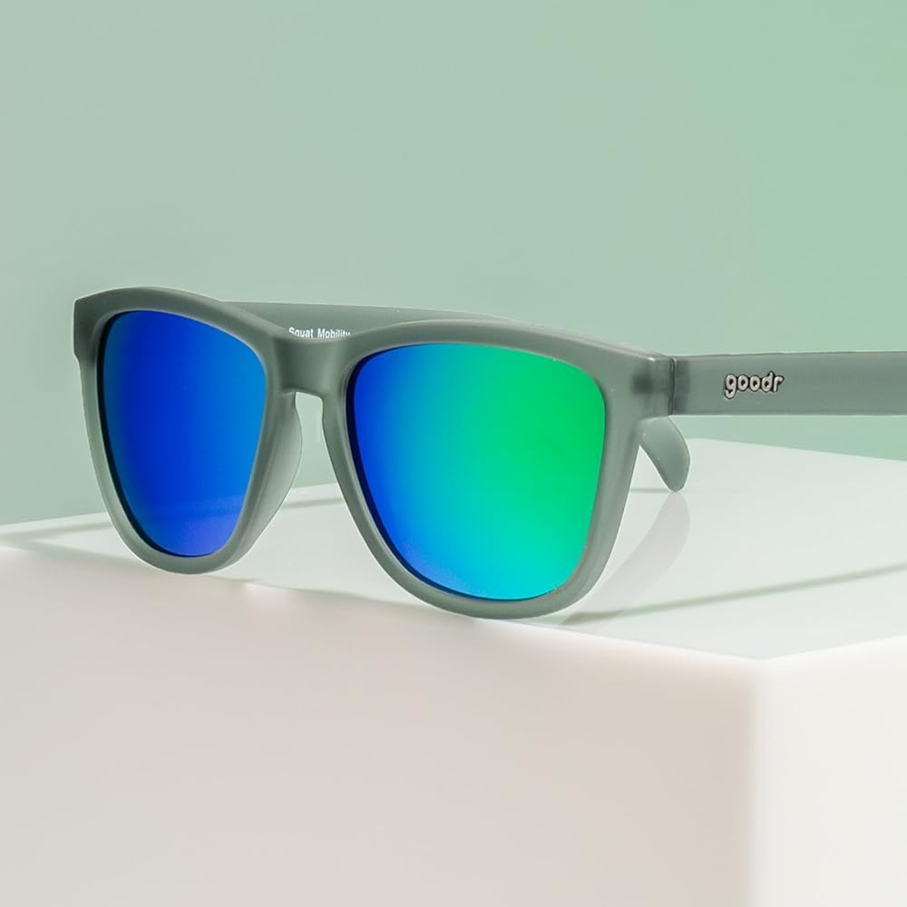 نظارات شمسية مستقطبة ذات حركة القرفصاء من جودر للرجال والنساء، إطارات شفافة رمادية داكنة مع عدسات عاكسة خضراء فاتحة، حماية من الأشعة فوق البنفسجية 400، مانعة للانزلاق