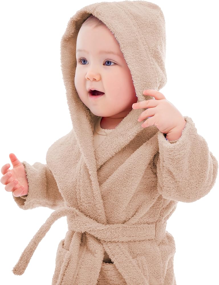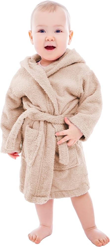 رداء أطفال مع غطاء للرأس: يمكن لطفلك الاسترخاء برفاهية مع رداء الحمام القطني المريح للجنسين مع غطاء رأس مرفق، وحزام خصر مربوط، وجيبين أماميين. إنه مثالي للحفاظ على الدفء بعد الاستحمام أو في الأيام الباردة، أو لإضافة الدفء إلى البيجامة الخاصة به.