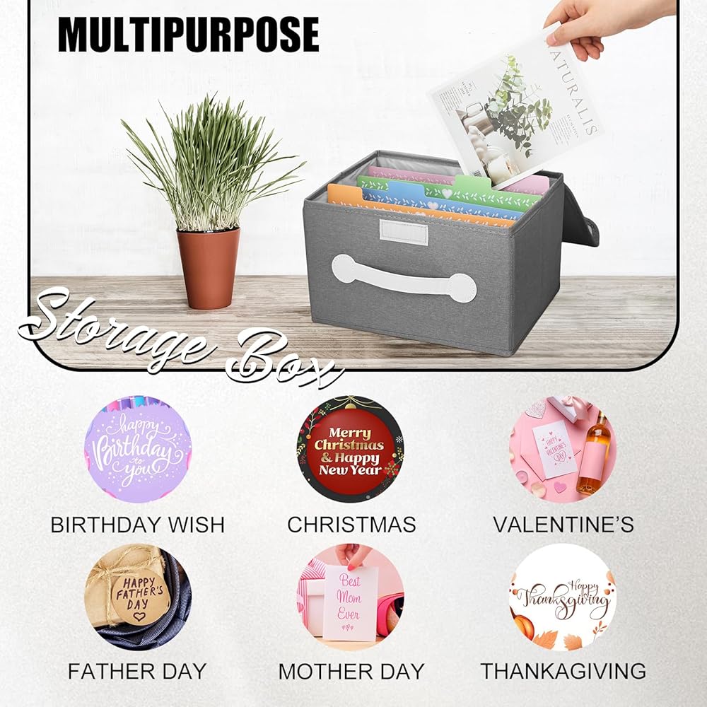 تنظيم سهل: صندوق منظم بطاقات التهنئة مع 16 فواصل و3 أوراق 84 قطعة ملصقات ذاتية اللصق، تصنيف واسترجاع البطاقات على الفور. لا تعاني أبدًا من العثور على البطاقة مرة أخرى
