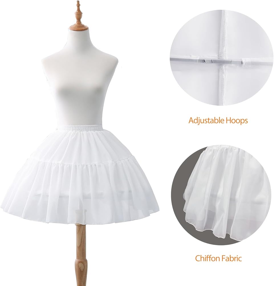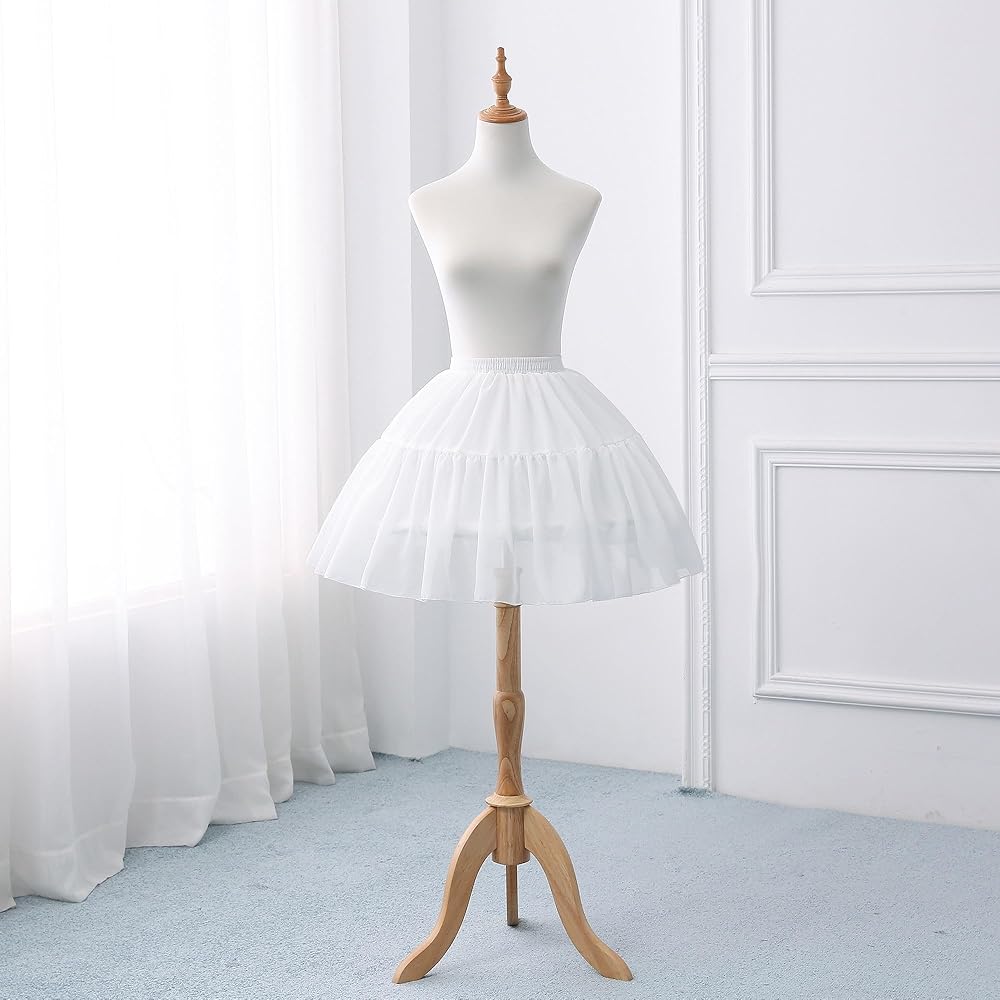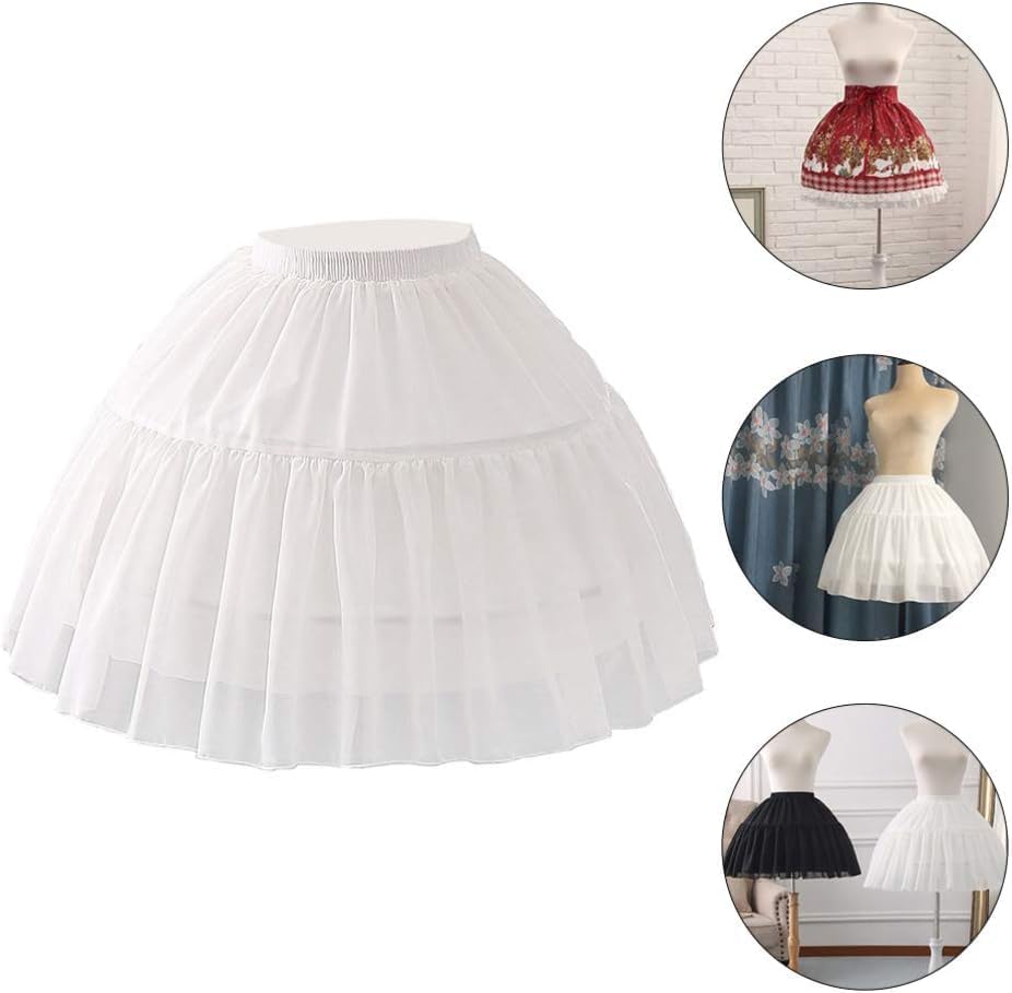 Lolita Crinoline Petticoat Women Girls White Chiffon 2 Hoops Short Petticoat Japanese Cosplay Costume Crionline Prom Ball Gown Petticoat Underskirt