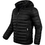 This puffer jacket men made of waterproof and lightweight fabric, featuring a hood and two side zipper pockets, 2 interior pockets, suitable for: Casual, travel, skiing, camping, outdoors or indoors wears etc.