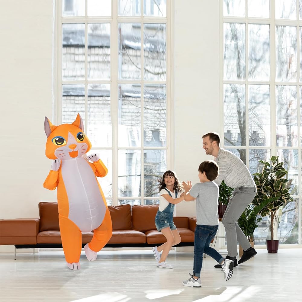 يتطلب 4 بطاريات AA أو مصدر محمول: يمكنك إدخال بطاريات أو طاقة متنقلة للتشغيل، بما في ذلك 1 × زي، 1 × مروحة! (غير متضمنة) تحتاج إلى 4 بطاريات AA، وإلا فلن تكون قوية بما يكفي لنفخ الزي بالكامل.