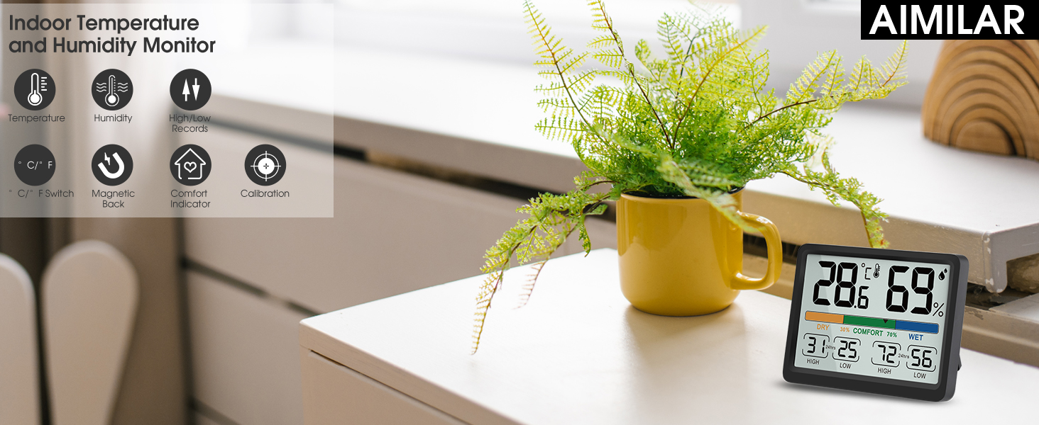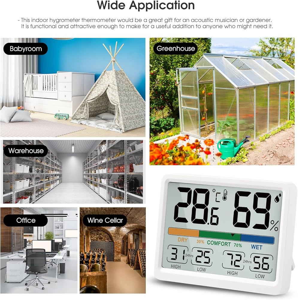 [هدية رائعة] - سيكون مقياس حرارة الرطوبة الداخلي هذا هدية رائعة للموسيقي الصوتي أو البستاني. إنها عملية وجذابة بما يكفي لتكون إضافة مفيدة لأي شخص قد يحتاج إليها.