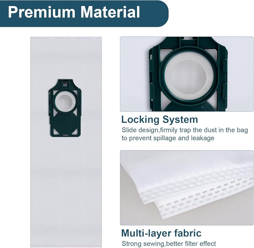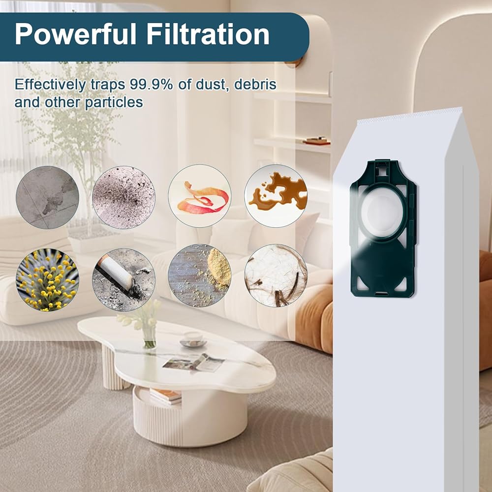 سهلة التركيب: تتميز أكياس مكنسة Hepa الكهربائية الخاصة بنا بطوق سهل التركيب يتم تحميله من الأعلى. ما عليك سوى وضع كيس تنظيف الغبار في مكانه وإغلاق الغطاء.