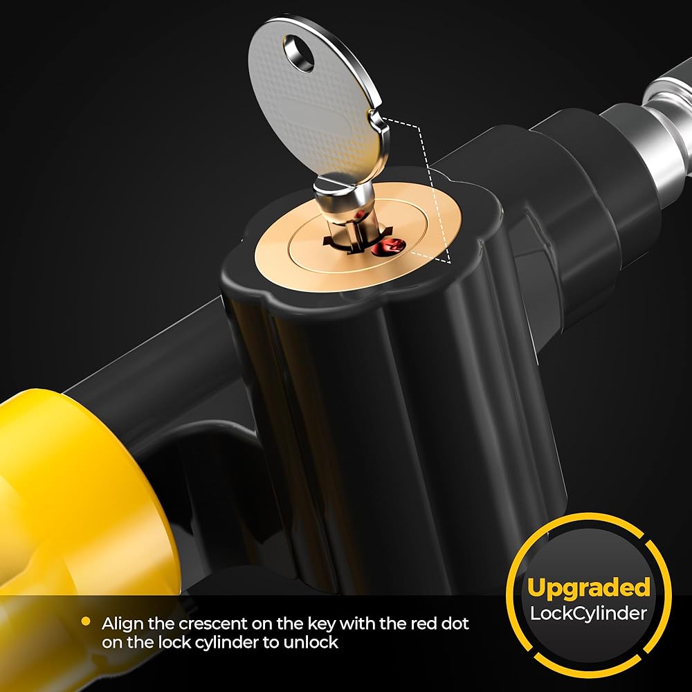 📌حل آمن مضاد للسرقة - مصنوع من سبائك الفولاذ عالي القوة، قفل عجلة القيادة هذا متين بشكل استثنائي ويدوم لفترة طويلة بشكل موثوق. اللون الأصفر الساطع يخلق رادعًا بصريًا قويًا، مما يمنع اللصوص من استهداف سيارتك. يمنحك راحة البال عند ركن السيارة في أي مكان.