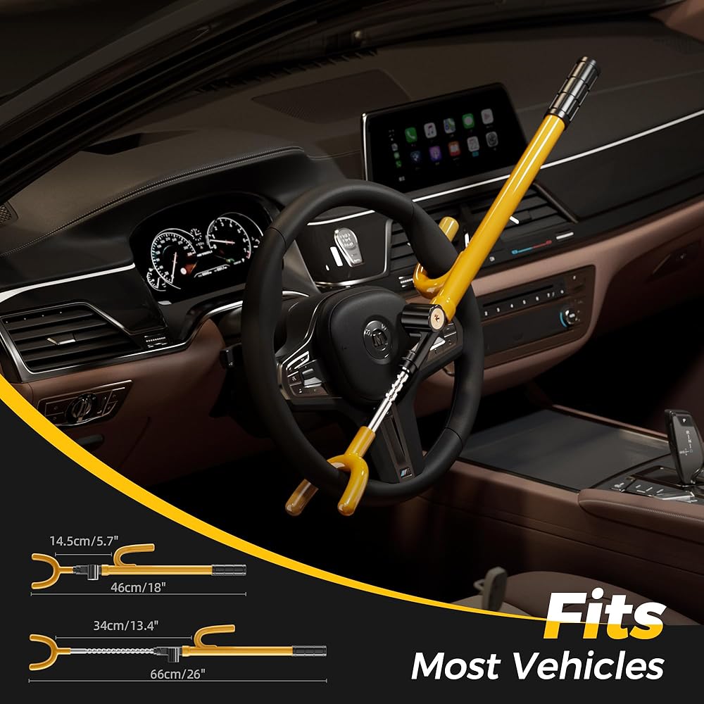 📌مناسب عالمي لمعظم المركبات - يمكن تعديل جهاز السيارة المضاد للسرقة القابل للسحب بحرية وفقًا لطول عجلة القيادة الخاصة بك. يناسب عجلات القيادة التي يبلغ قطرها الداخلي الأقصى 13.4 بوصة. مناسبة لمجموعة واسعة من المركبات بما في ذلك سيارات السيدان، وسيارات الدفع الرباعي، والشاحنات الصغيرة، والسيارات الرياضية، إلخ.