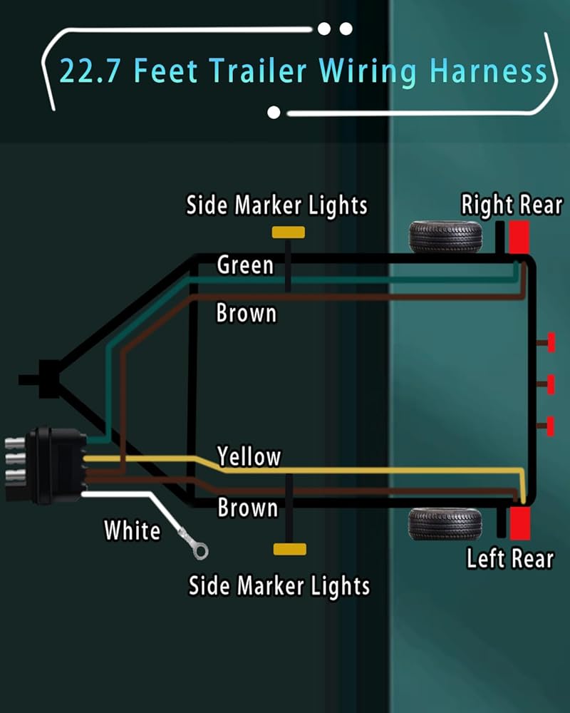 سلك مقطورة طويل بطول 22.7 قدمًا - يبلغ الطول الإجمالي لسلك المقطورة هذا 22.7 قدمًا. السلك المسطح الذكر ذو 4 سنون مع سلك أرضي بطول 2.5 قدم طويل بما يكفي لتوصيل المقطورة من البداية، مما يوفر مرونة التثبيت.