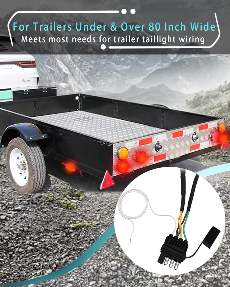 تطبيق واسع - يتم استخدام الموصل المسطح الجانبي للمقطورة ذو 4 دبابيس و5 أسلاك لجميع أنواع المقطورات، ويوفر قابس ذكر للمقطورة الخاصة بك، ومناسب لمقطورات القوارب، أو مقطورات ATV، أو مقطورات البضائع الأخرى، يرجى ملاحظة أن المقطورات/شاحنات السحب يجب أن تكون 4 -قابس الطريق، غير متوافق مع أسلاك مقطورة الدراجة النارية.
