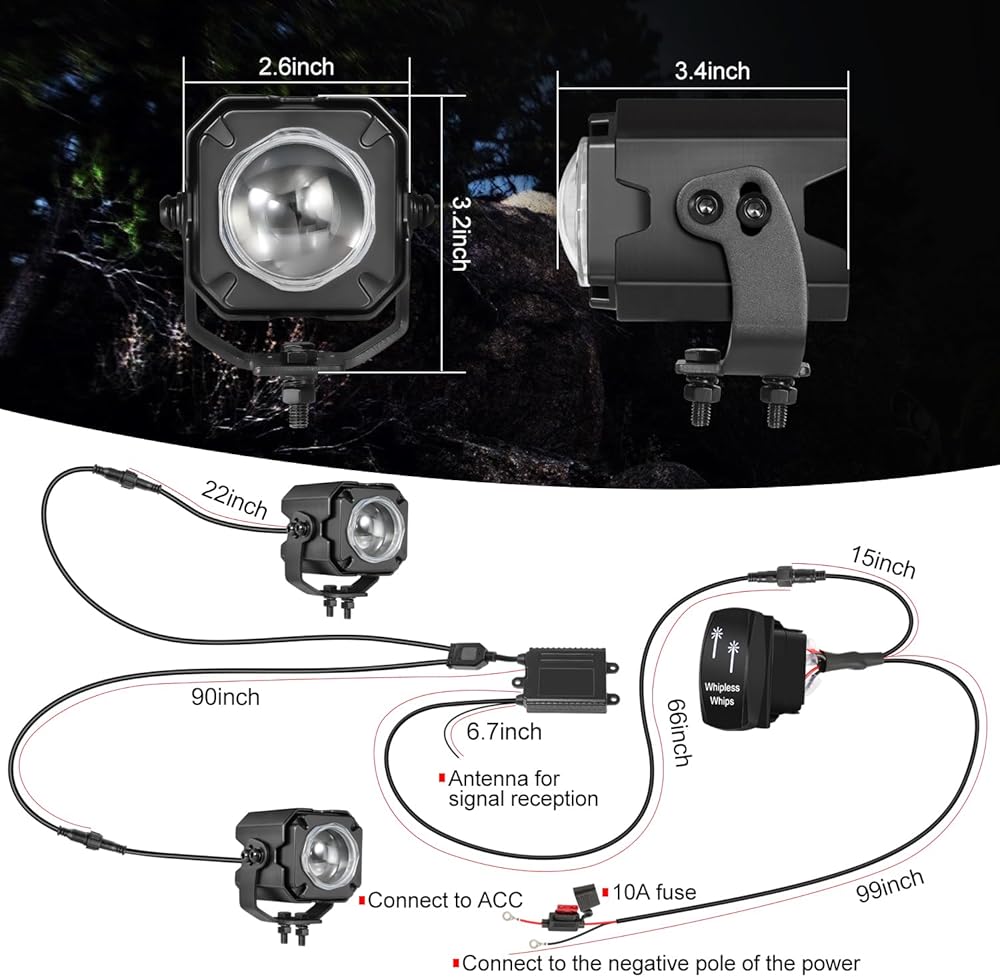 مناسب عالمي للدراجات النارية DC 12 ~ 24 فولت، الرياضات القوية، ATV، UTV، RZR، جنبًا إلى جنب، Can-am، قضبان الرمل/العربات، مركبات الطرق الوعرة، الجيب، الالتقاط، GMC، ذاكرة الوصول العشوائي، الشاحنات، عربة الجولف، القوارب إلخ يمكن تركيبه على المصد الأمامي/الخلفي أو السقف أو شريط الثور أو أي موضع آخر.