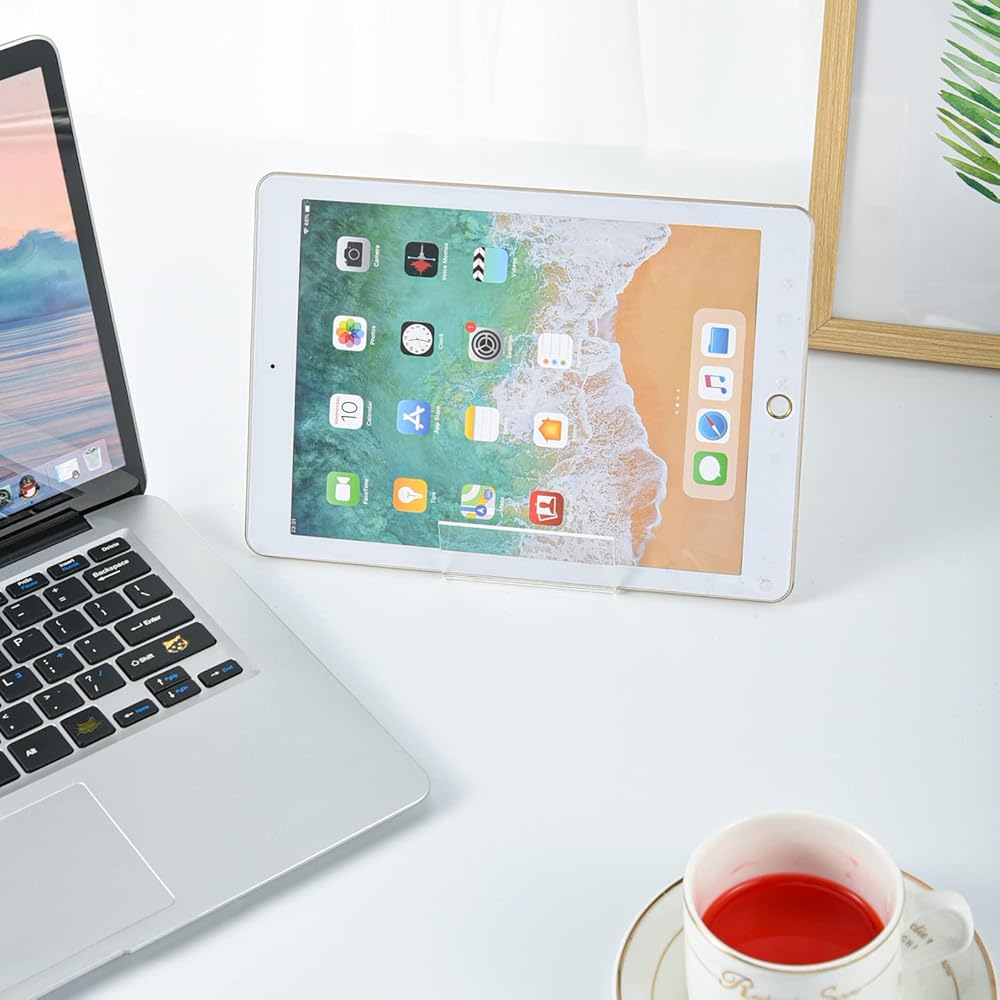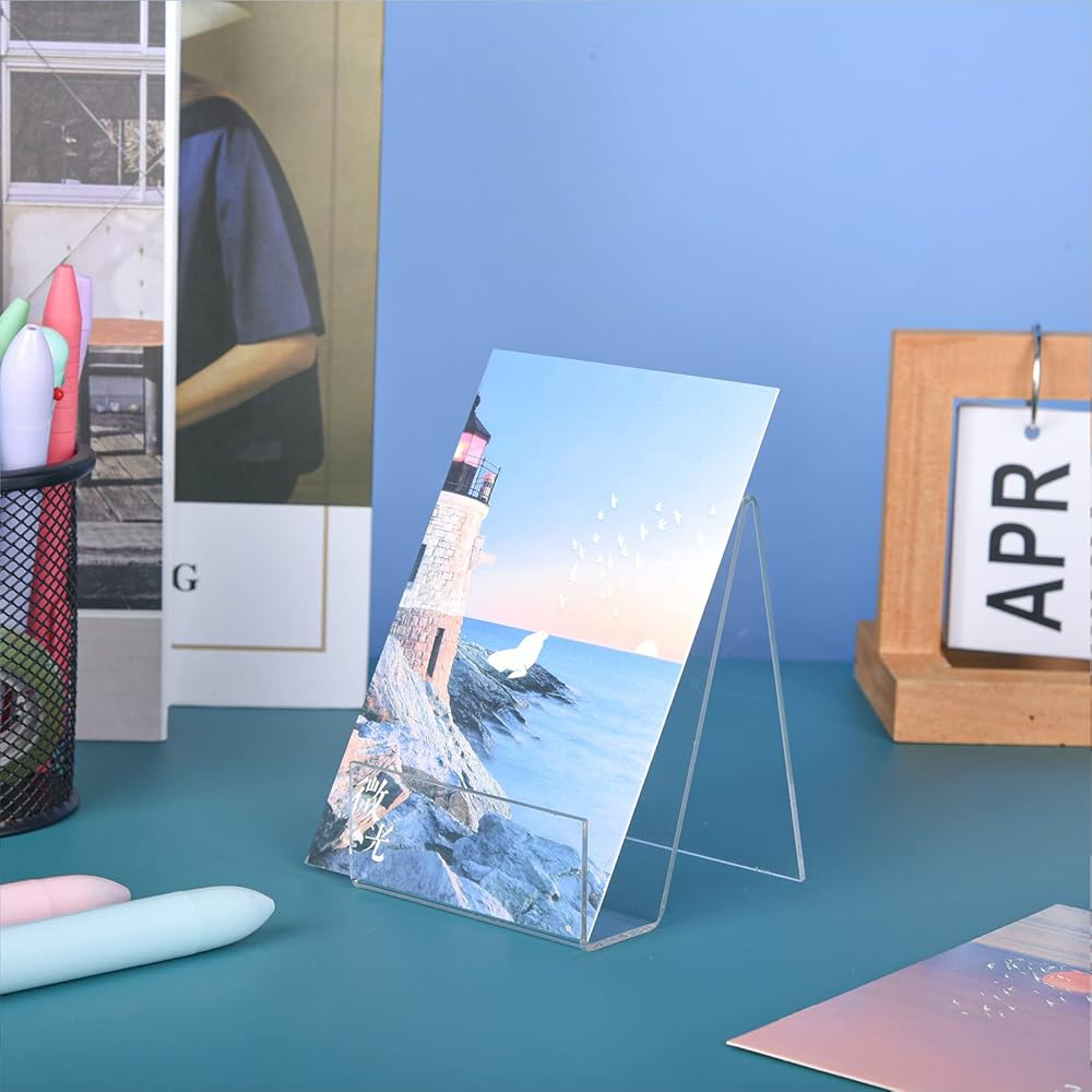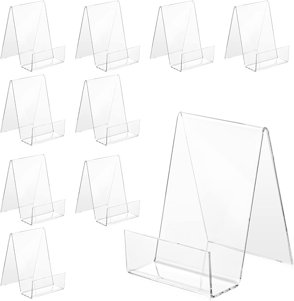 10 قطع من حامل عرض الكتب الأكريليك مع حافة، حامل عرض حامل من الأكريليك الشفاف مقاس 4 × 3، حامل كتب صغير للأجهزة اللوحية لعرض الصور والكتب وأوراق الموسيقى والأقراص المضغوطة وأجهزة الكمبيوتر المحمولة