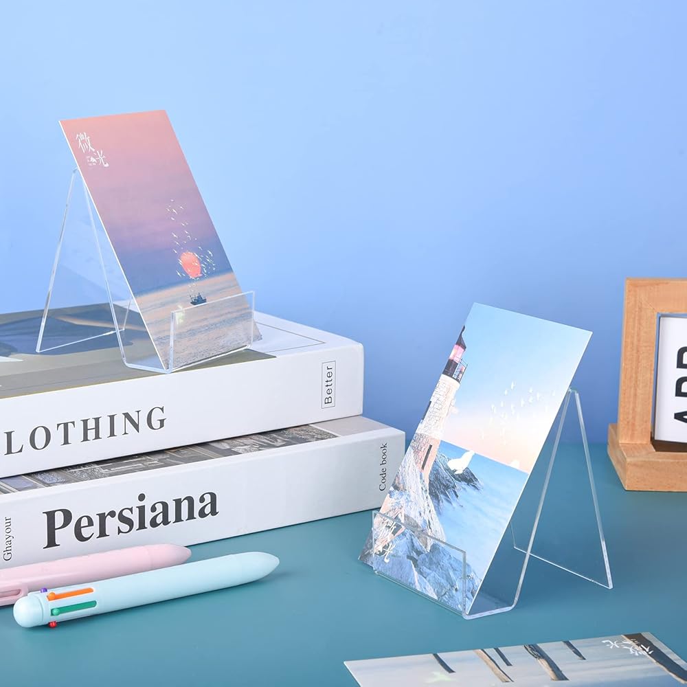 مادة موثوقة: مصنوعة من الأكريليك الشفاف، توفر حوامل عرض الكتب هذه مظهرًا أنيقًا وشفافًا، مما يضمن الثبات لعرض مقتنياتك بهيكل قوي يدوم طويلاً.