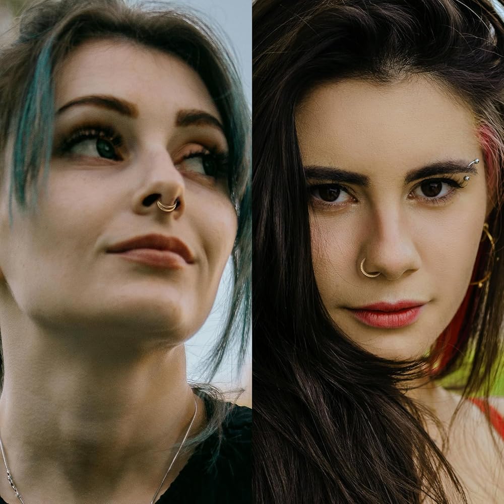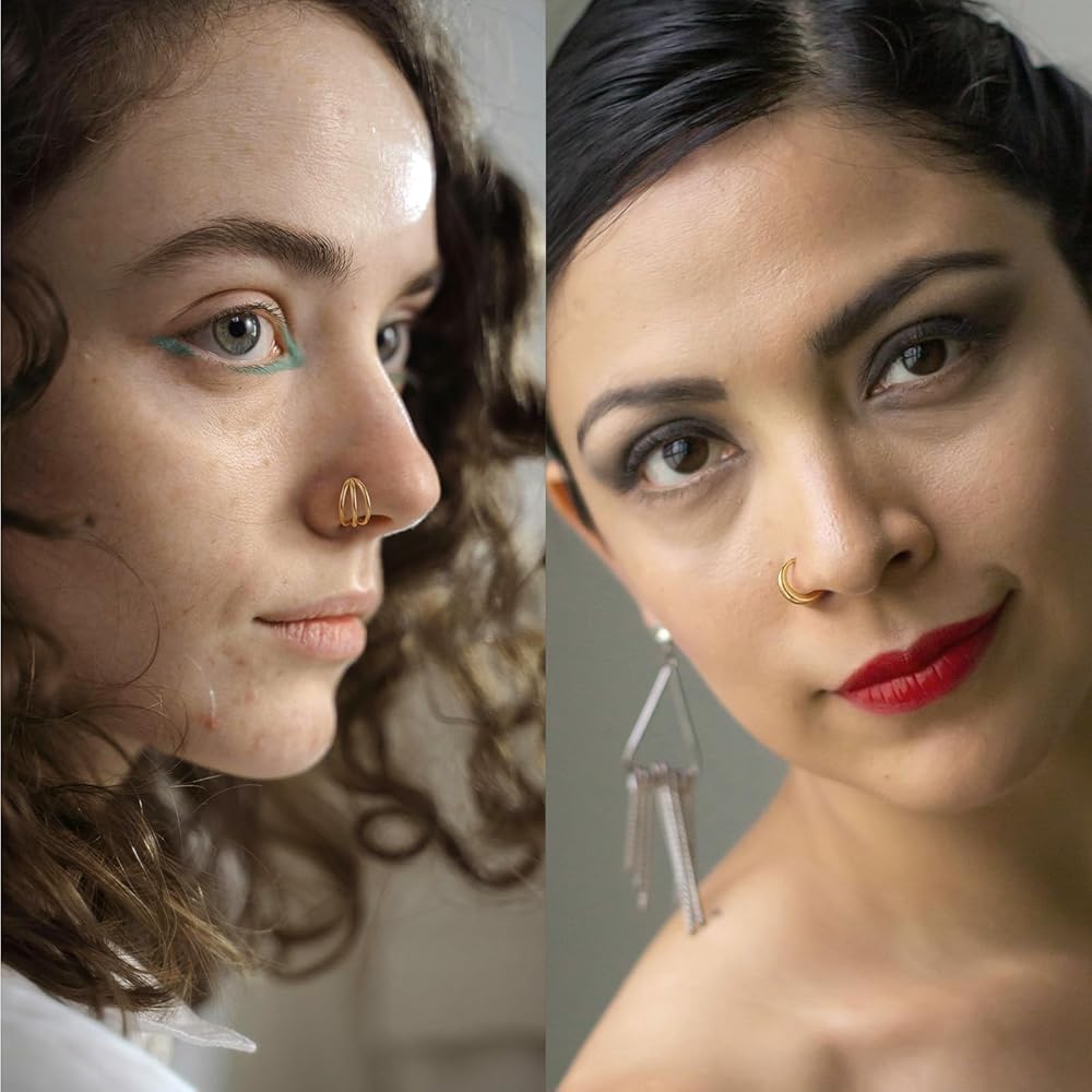 • حزمة متنوعة: تأتي هذه الحزمة مع 6 أنماط فريدة من حلقات الأنف - حلقات الأنف الذهبية، حلقة الأنف تشيكوسلوفاكيا، حلقة طوقية مزدوجة تشيكوسلوفاكيا، حلقة أنف مزدوجة، حلقة أنف ثلاثية، حلقة أنف ملتوية، وحلقة أنف مكتنزة، كل نمط يقدم مظهرًا مميزًا ، مما يسمح للمستخدمين بالتعبير عن أسلوبهم الشخصي من خلال مجموعة متنوعة من الخيارات، مما يجعله خيارًا مثاليًا للارتداء اليومي والمناسبات الخاصة.