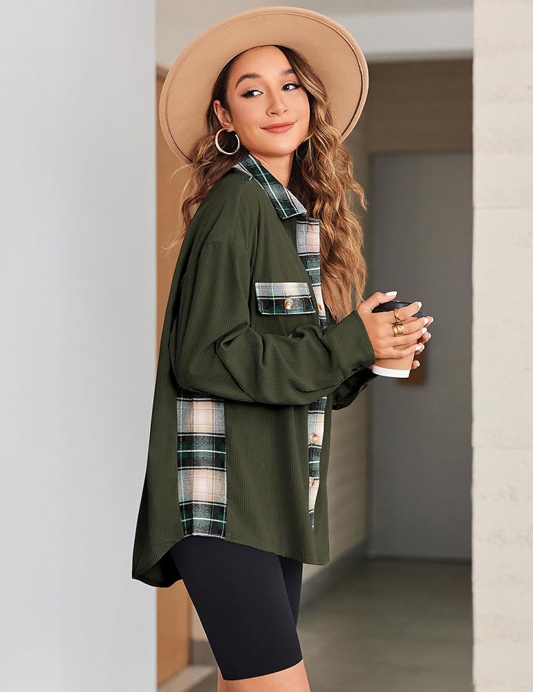 قمصان بحاشية غير متماثلة: سترات سروال قصير مع جيوب، قمصان فلانيل للنساء، قمصان سروال قصير منقوشة كبيرة الحجم، سترة خفيفة ملونة، ملابس موضة خريف 2024، سترة غربية غير رسمية، قمصان بأكمام طويلة على شكل جناح الخفاش، بلوزة بأزرار سفلية، معاطف شتوية للصديق