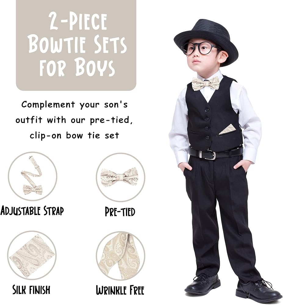 طقم منديل للأولاد مكون من قطعتين بتصميم بيزلي مربوط مسبقًا وقابل للتعديل.