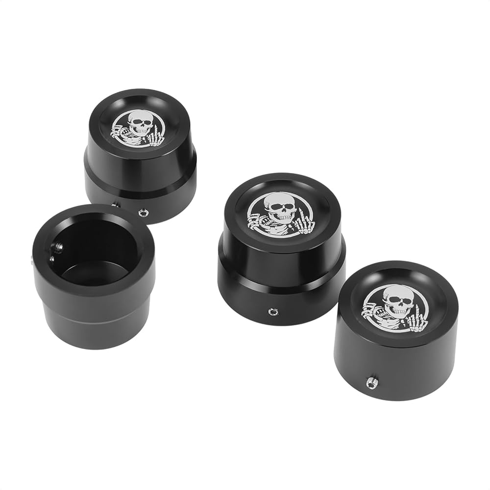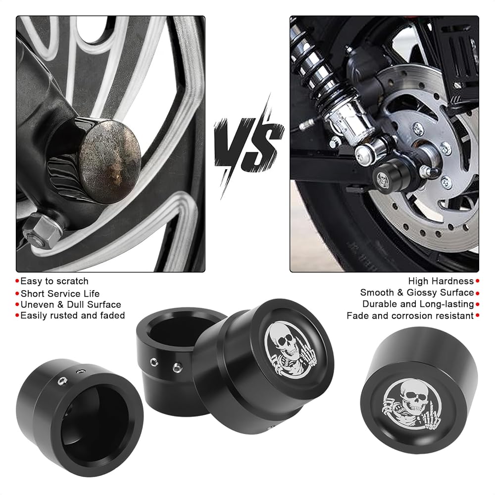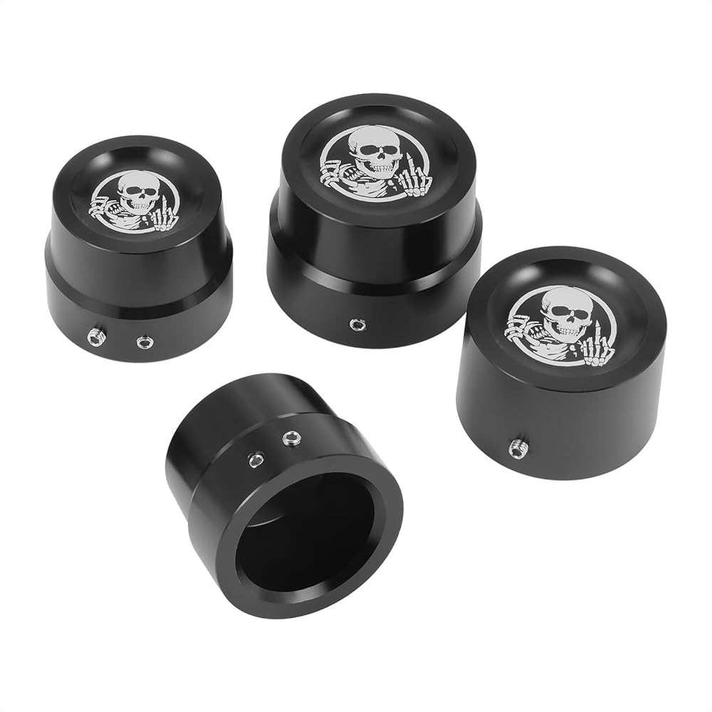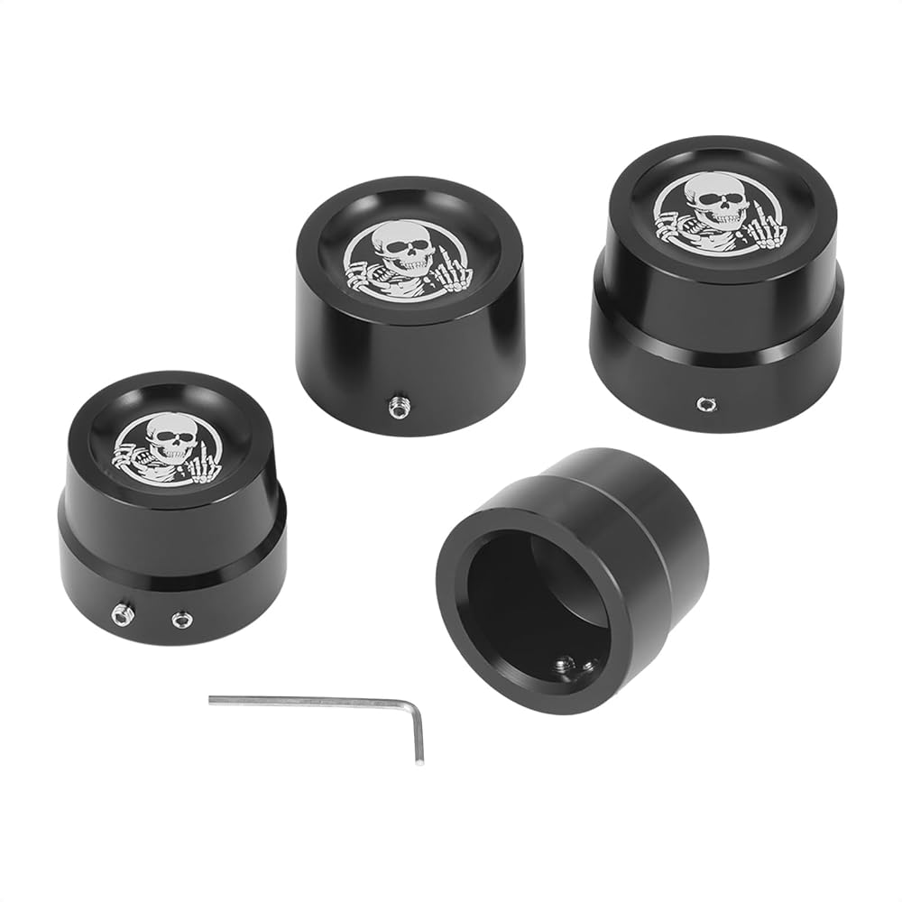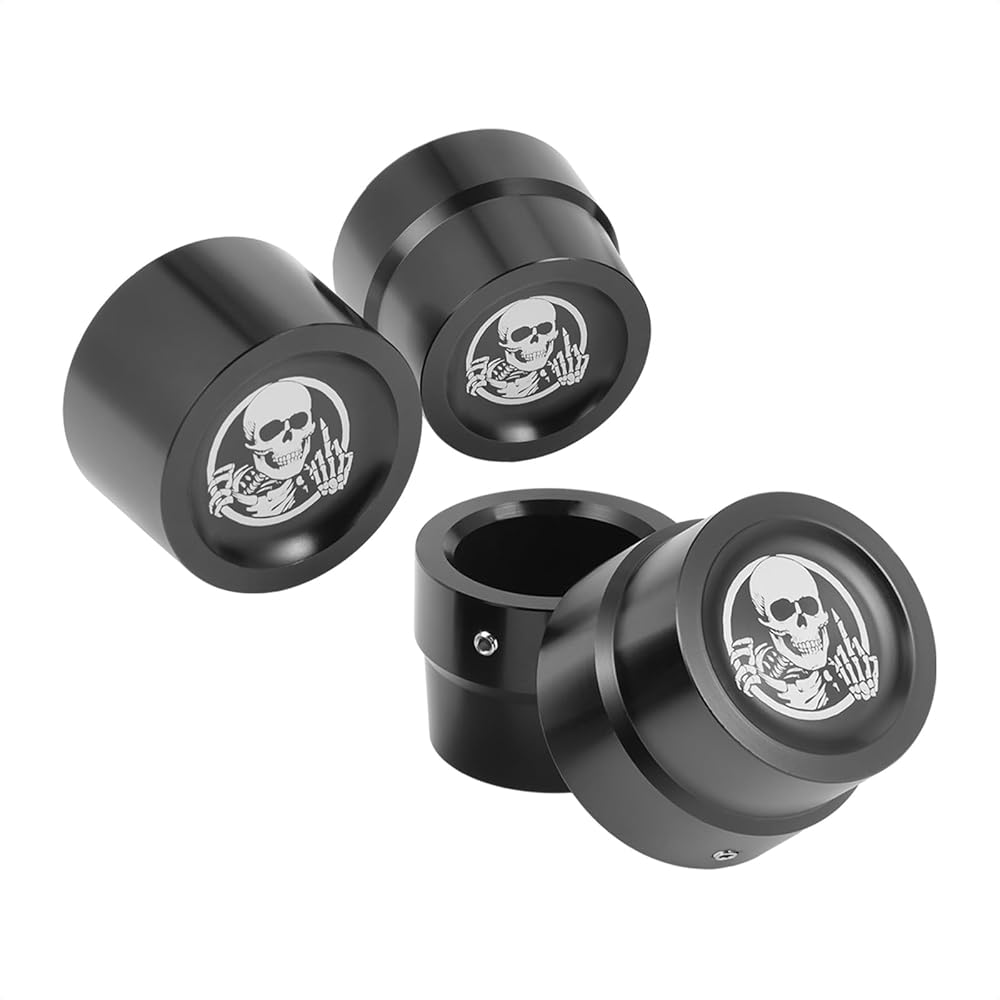 مجموعة أغطية المحور الأمامي للمحور الخلفي، نمط جمجمة متوافق مع Harley Touring Street Road Electra Tri Glide V-Rod Sportster XL883 1200 Softail Dyna (4 عبوات)