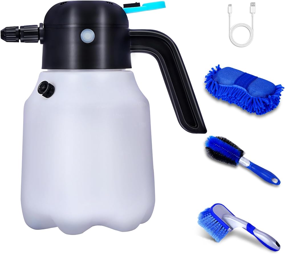 بخاخ إسفنجي كهربائي من ZATOOTO مع USB قابل لإعادة الشحن، بخاخ إسفنجي لبطارية السيارة سعة 1.8 لتر، وضعين مع 3 أنواع رذاذ، ضغط تلقائي مثالي لمجموعة غسيل السيارات بدون جهد