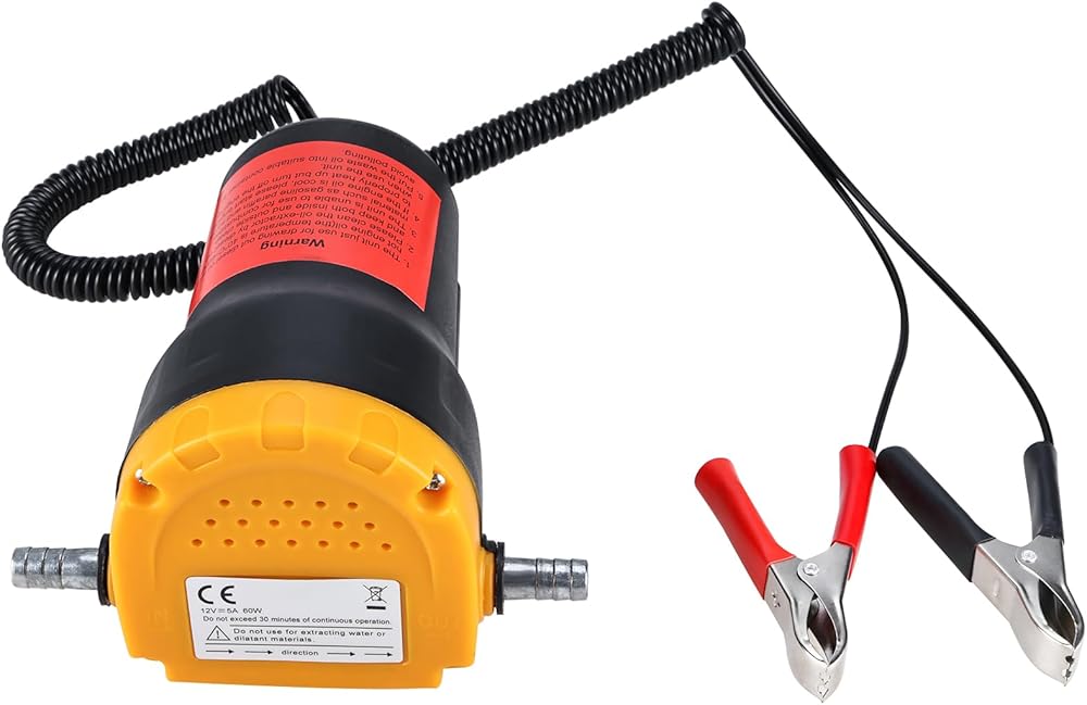 Voltage: DC 12V; Wattage: 60W; Current: 5A; Max Flow Rate: Motor Oil 0.3-0.5L/min, Diesel or Heating-oil 3-5L/min.