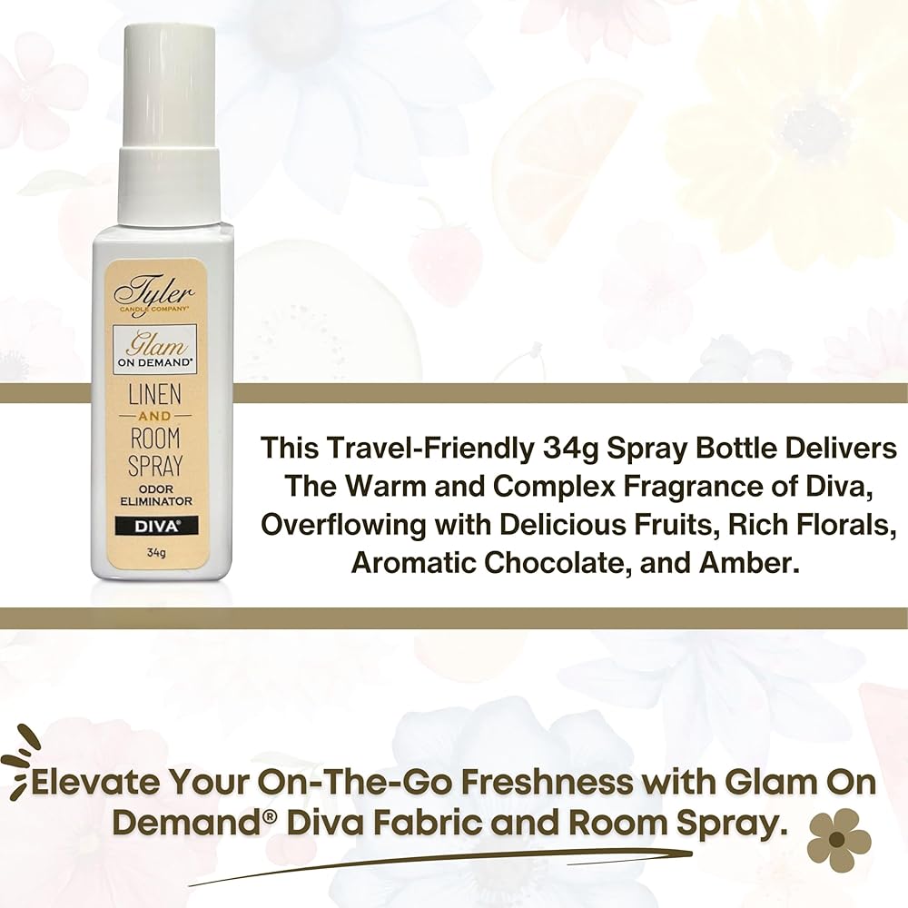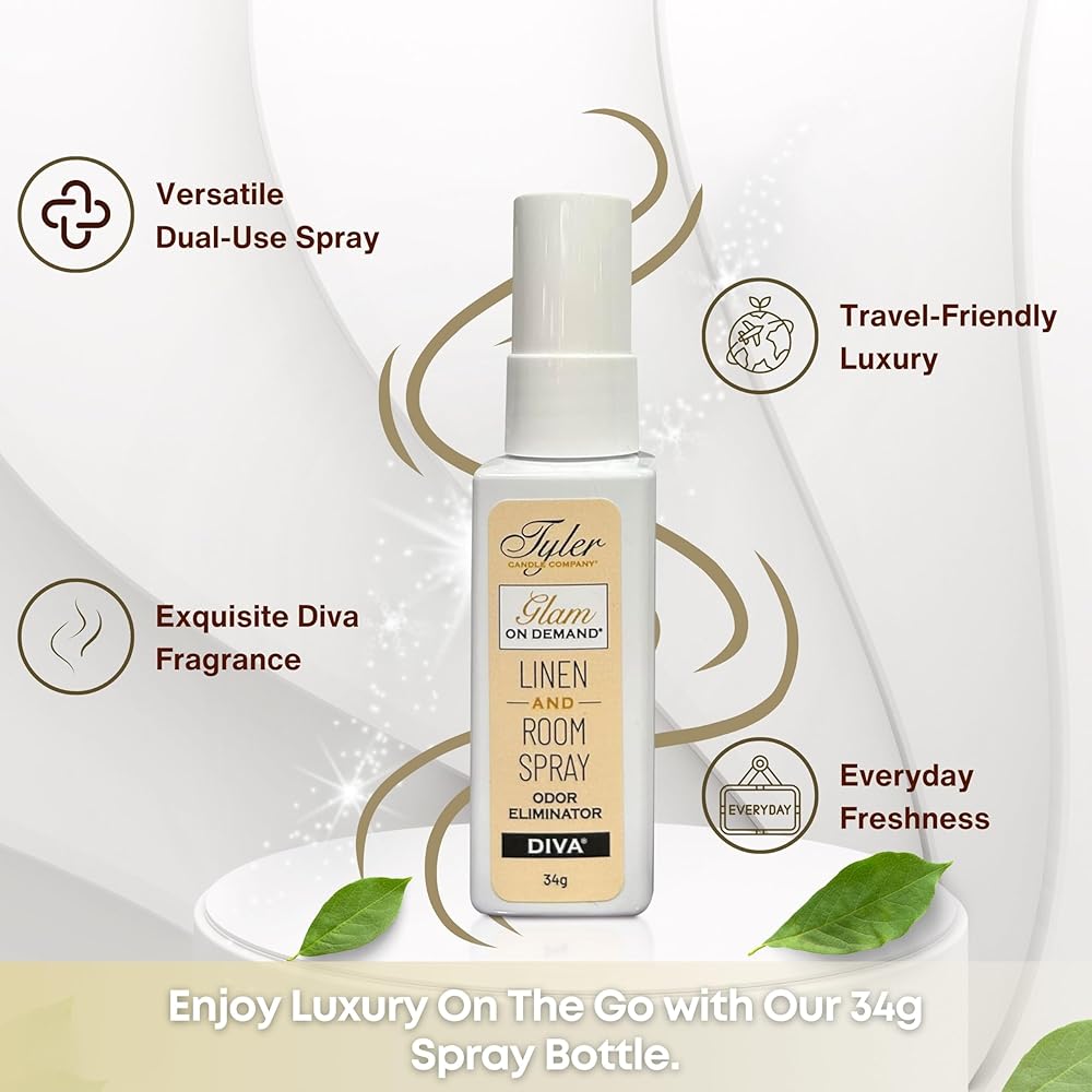 🔄 Dual-Use Versatility: Whether you need to freshen up your linen, fabrics, or entire rooms, our Glam On Demand spray is the perfect air freshener spray and room fresheners. Enjoy the flexibility of a dual-use spray that ensures your favorite scents linger in every corner of your home or office, including bathroom spray odor eliminator and before you go toilet spray options. Perfect for hotel room cleaning essentials for travel and Tyler Diva car freshener.