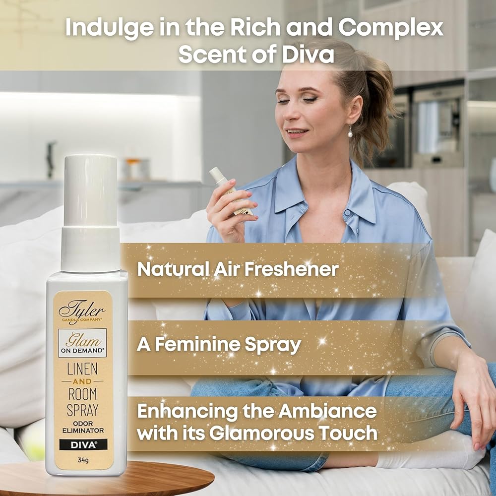 🕛 Long-Lasting Freshness: Say goodbye to stale odor and hello to continuous non toxic room spray freshness! With a generous 227g spray bottle, Tyler Diva Glam On Demand provides long-lasting fragrance, making it an essential part of your bathroom essentials for women and household essentials, including bed sheet spray freshener and couch freshener spray. Keep your spaces smelling fresh and inviting, day after day.