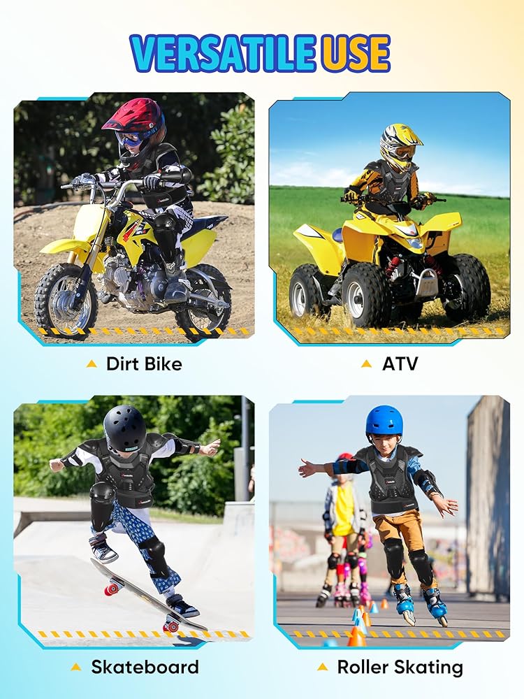 • Ideal for Various Scenes: From biking and motorcycling to off-road adventures, ATV riding, skateboarding, go-karting, rollerblading, and scooter cruising, our gear offers reliable protection for a wide range of activities. It's the perfect gift for kids on birthdays, Children's Day, Christmas, and any occasion