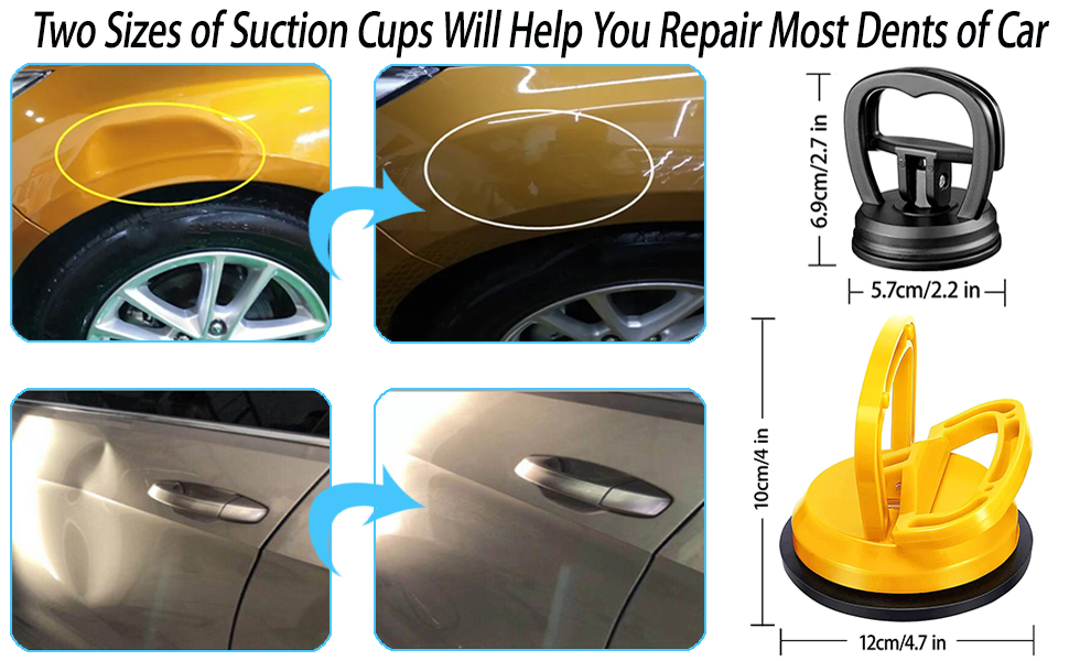 【تذكير دافئ】تأكد من أن كوب الشفط لسحب الدنت يلتصق بقوة على سطح الدنت، قبل سحبه. يرجى التأكد من أن انبعاجات السيارة موجودة على السطح المستوي ويجب أن تكون أكبر من قطر كوب الشفط السفلي. أداة سحب إصلاح الدنت هي فقط للسطح المستوي، وليس للسطح المنحني وتخزينه في حالة جافة.
