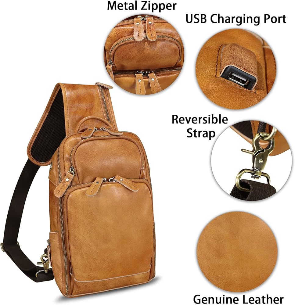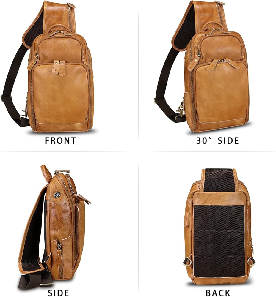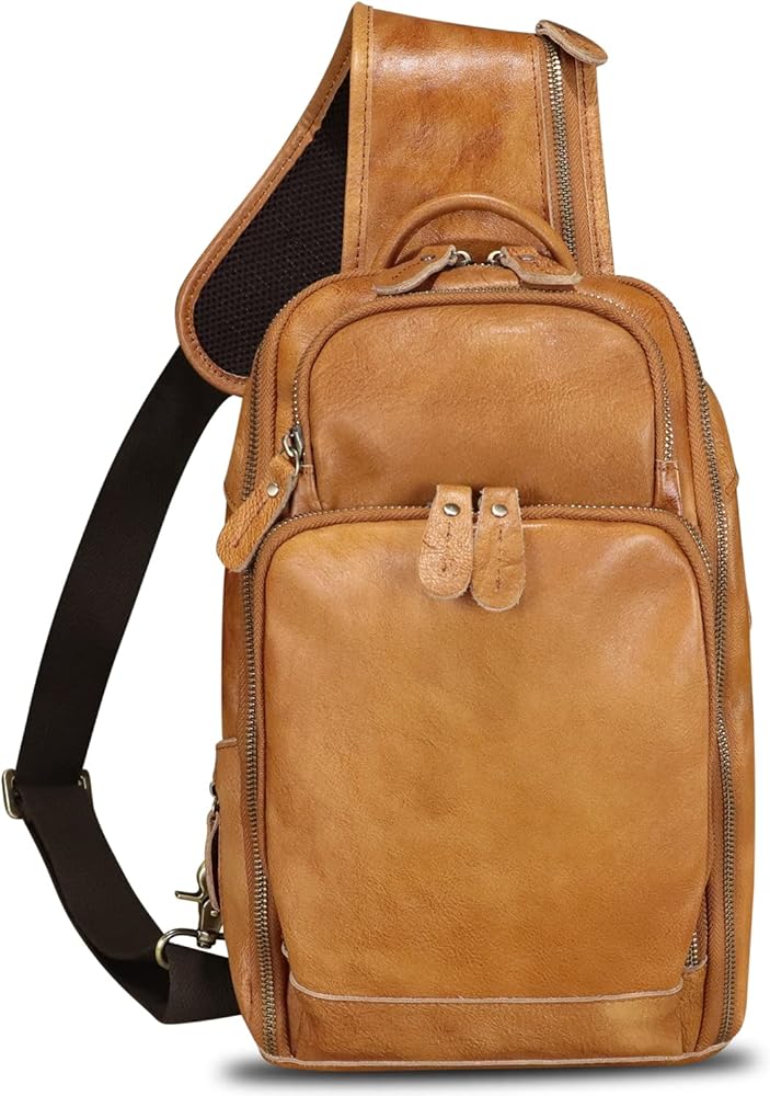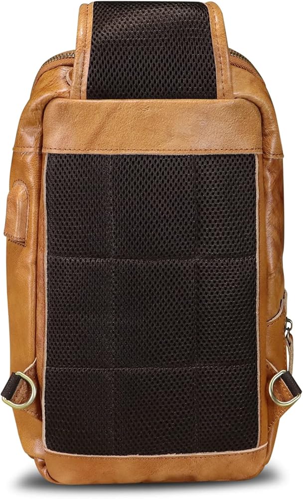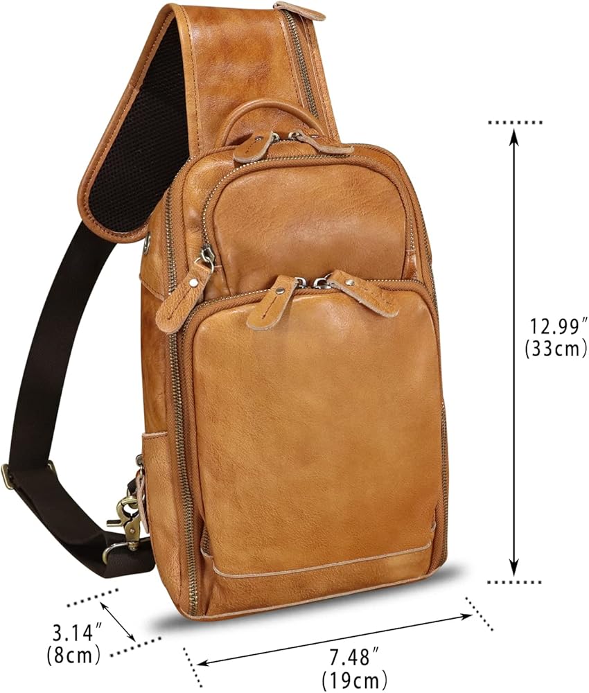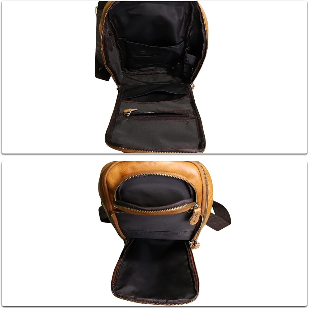 حقيبة كتف من الجلد الطبيعي للرجال حقيبة كتف كلاسيكية للمشي لمسافات طويلة حقيبة ظهر مصنوعة يدويًا حقيبة يومية غير رسمية محفظة فاني (بني)