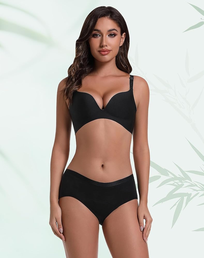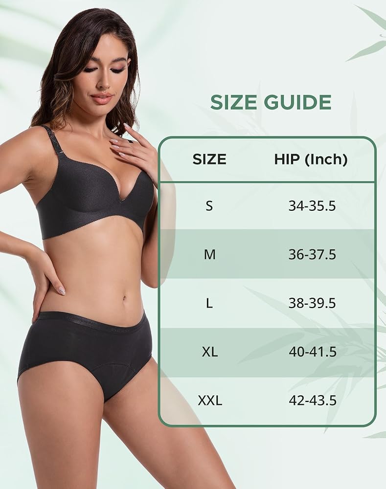 مريحة مثل السراويل الداخلية الشائعة: مصنوعة من 93% حرير صناعي من الخيزران و7% ألياف لدنة، هذه الملابس الداخلية النسائية ناعمة وخفيفة الوزن. تتميز السراويل الداخلية للفترة بقماش داخلي مسامي، مما يحافظ على انتعاش المنطقة الخاصة. إنها رائعة لأيام الحيض والارتداء اليومي
