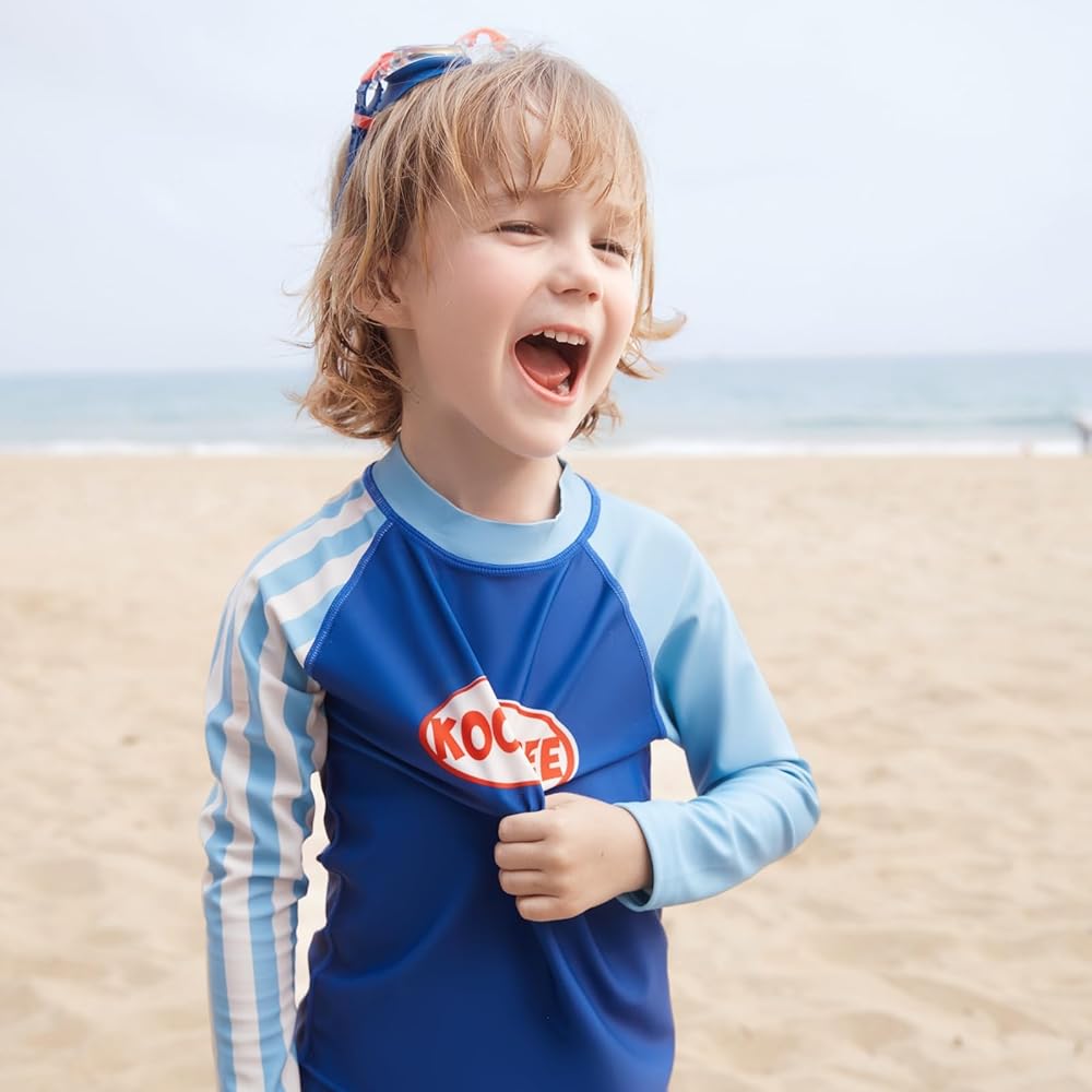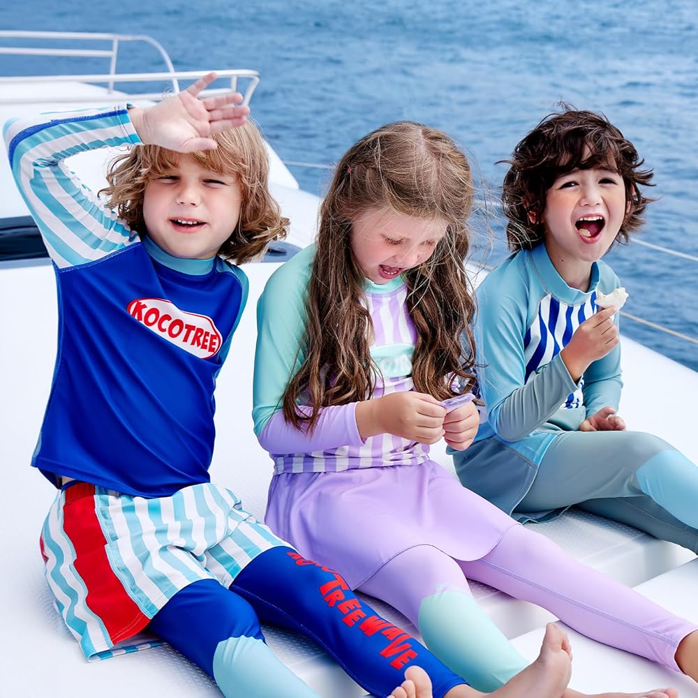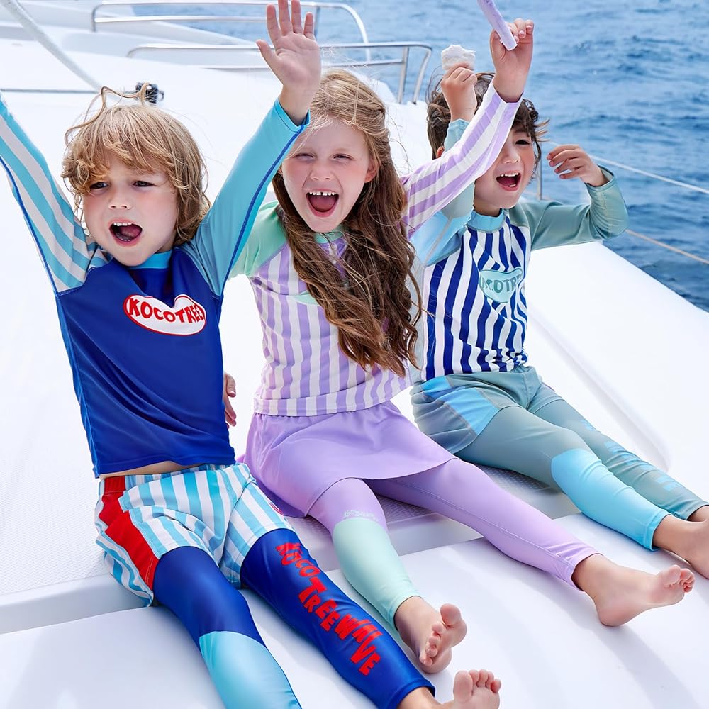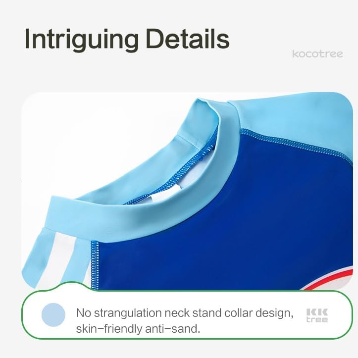 - واقي من الشمس: بدلة السباحة مصنوعة من مادة واقية من الشمس، والتي تمنع بشكل فعال أضرار الأشعة فوق البنفسجية وتحمي بشرة الأطفال من تأثير أشعة الشمس.