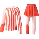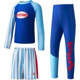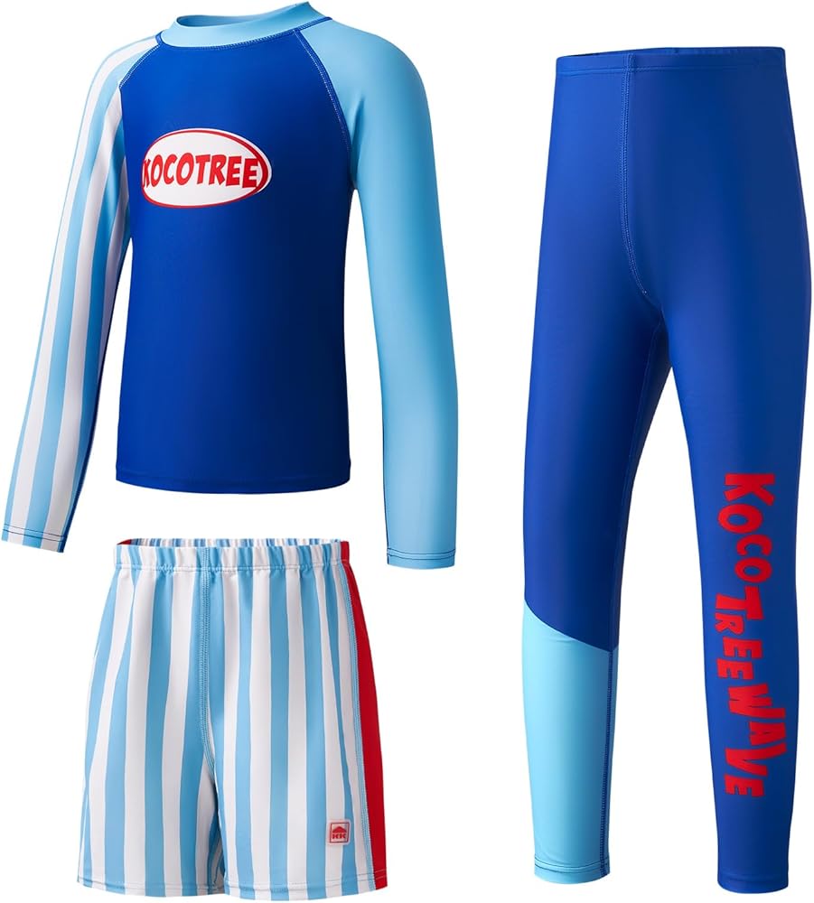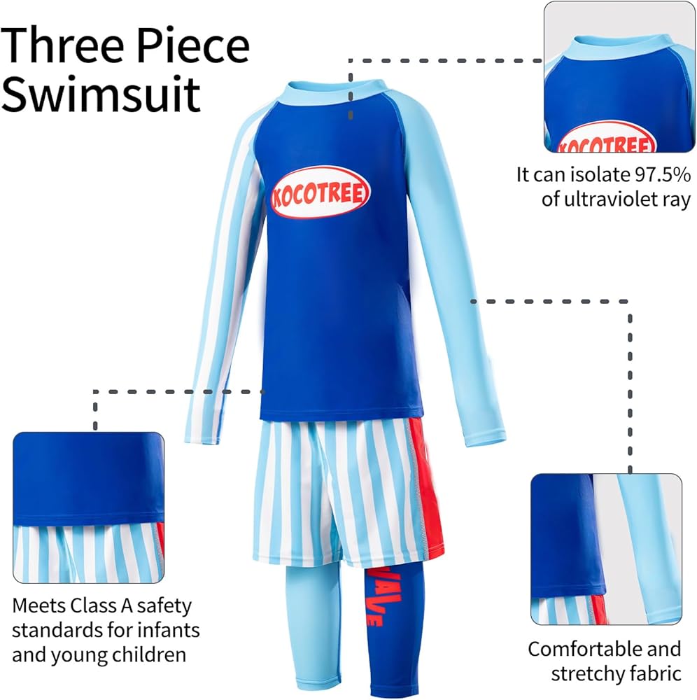 - التصميم: المجموعة المكونة من ثلاث قطع تتضمن بدلة سباحة وقبعة ونظارة واقية، مع أنماط مطبوعة رائعة وألوان زاهية لجذب انتباه الأطفال.