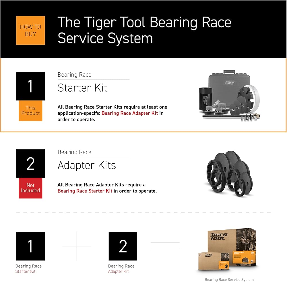 تصميم مبتكر: تُحدث مجموعة Bearing Race Starter Kit ثورة في خدمة السباق من خلال السماح بالإزالة والتركيب مباشرة على المحور، مع بقاء العجلات متصلة. يتطلب هذا النظام الذي يعمل بالطاقة الهيدروليكية محولات محددة ومضخة قدم هيدروليكية بقوة 10000 رطل لكل بوصة مربعة للتشغيل، والأسطوانة الهيدروليكية Tiger Tool الموجودة لديك، مما يعمل على تبسيط مهام الصيانة عند استخدامها جميعًا معًا.