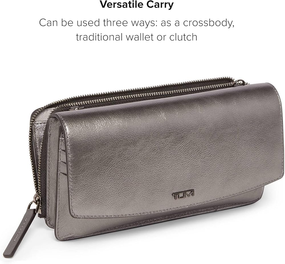 This versatile wallet can be used three ways: as a crossbody, traditional wallet or clutch. It features functional pockets for organizing essentials, plus it's designed to easily carry a phone.
