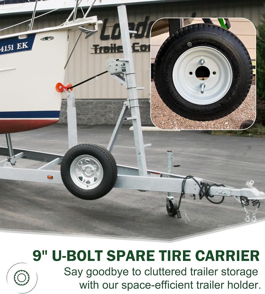 مثالية لقوارب التزلج أو قوارب الصيد أو مقطورات المراكب الشراعية، حيث توفر دعامة الإطارات الاحتياطية ذات المسمار على شكل حرف U توافقًا عالميًا.