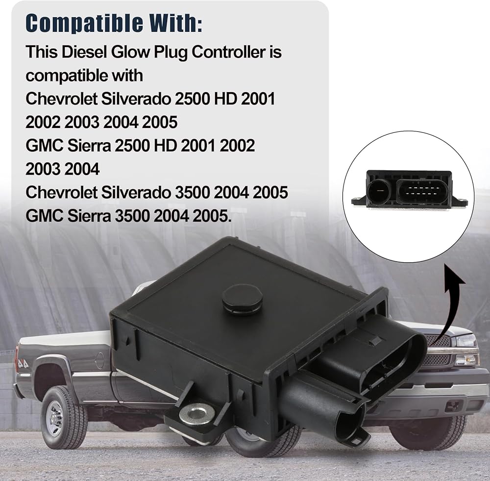 【متوافق مع】: وحدة التحكم بقابس توهج الديزل هذه مناسبة لسيارة Chevy Silverado 2500 HD 2001 2002 2003 2004 2005، GMC Sierra 2500 HD 2001 2002 2003 2004، Chevy Silverado 3500 2004 2005، GMC Sierra 3500 2004 2005