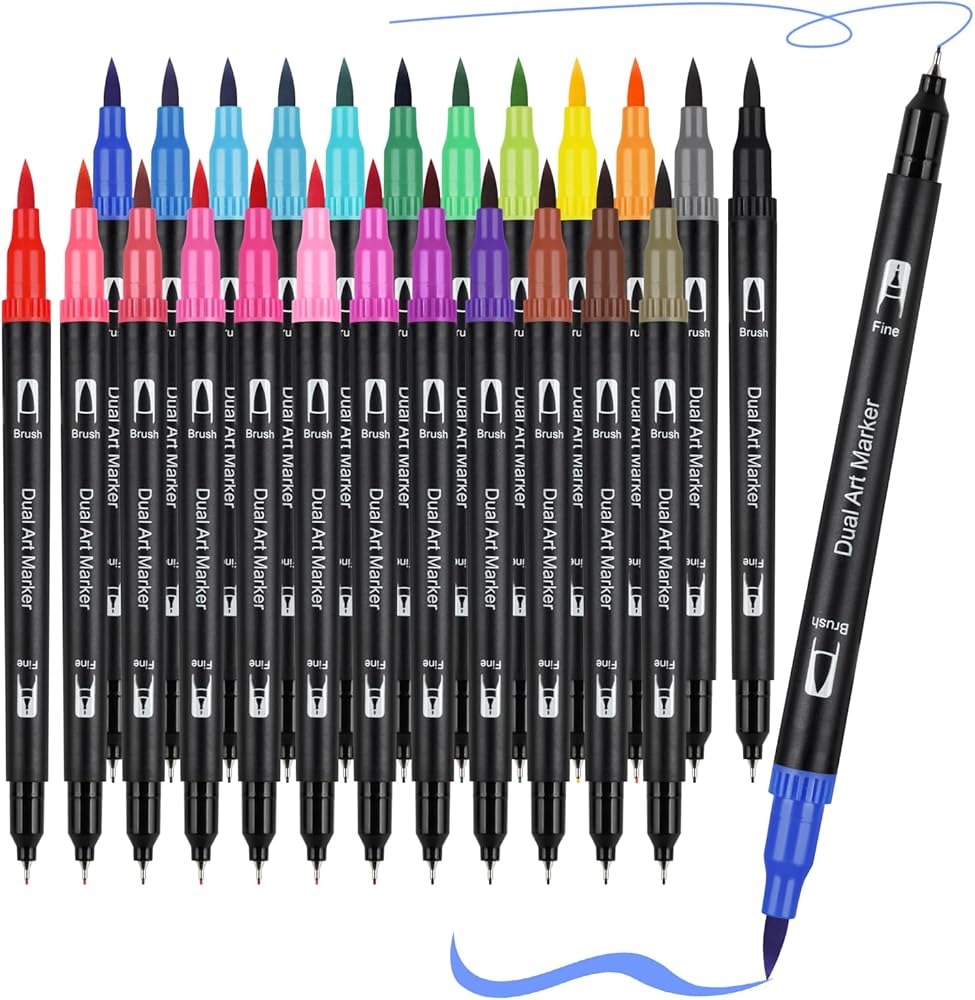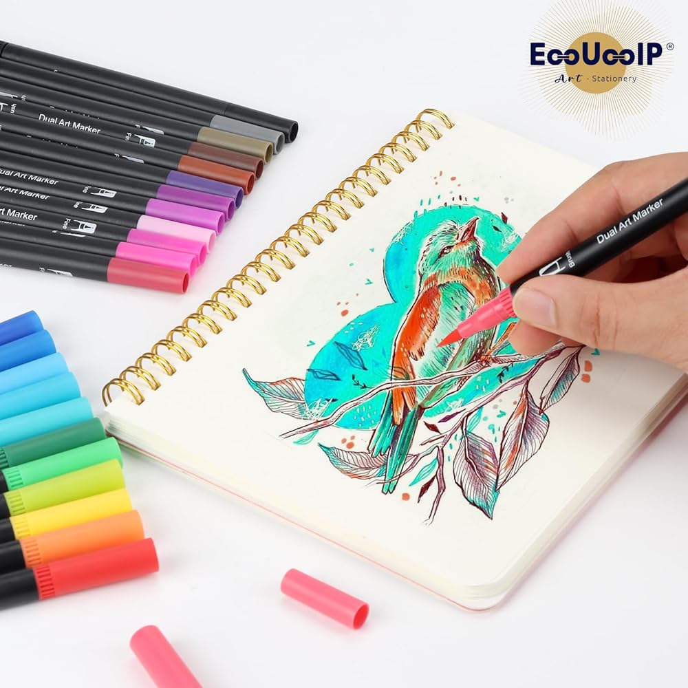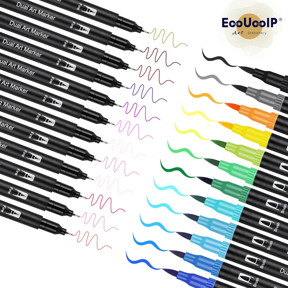 أقلام رسم مزدوجة الفرشاة من EooUooIP، 24 لونًا لكل قطعة - أقلام ملونة ذات رؤوس دقيقة للمشروعات الفنية - مثالية للفنانين والطلاب والأعمال اليدوية