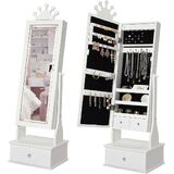 خزانة مجوهرات للأطفال من GarveeHome، خزانة مجوهرات للأطفال مع ضوء LED، منظم مجوهرات قائم بذاته مع مرآة كاملة الطول، 3 أدراج تخزين، خزانة مرآة للأطفال للفتيات (بنفسجي)