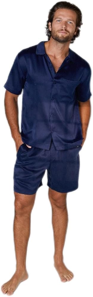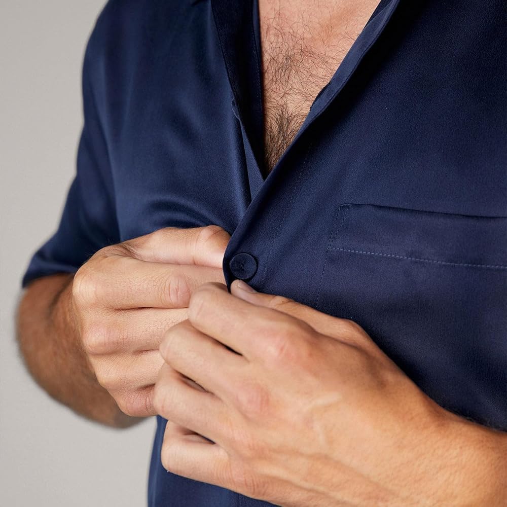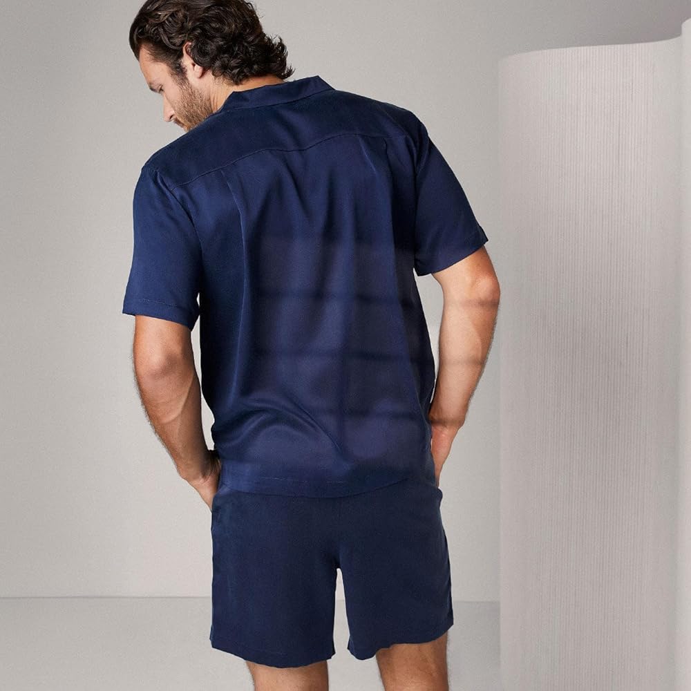 Lunya طقم قصير من الحرير قابل للغسل بأزرار باللون الأزرق الداكن