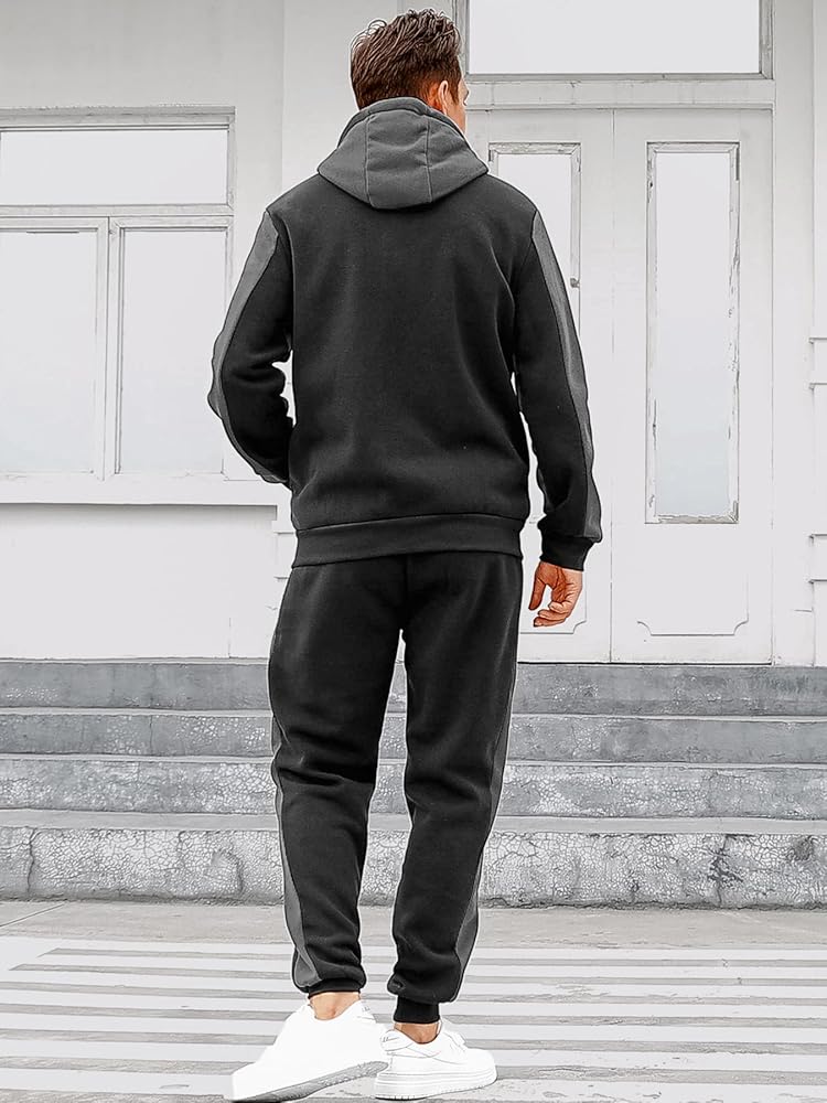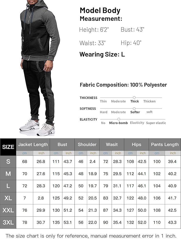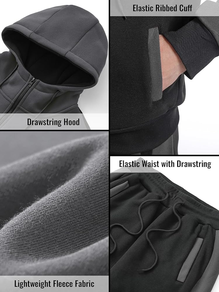 【خامة عالية الجودة】: مجموعة البدلة الرياضية ذات القلنسوة الرجالية هذه مصنوعة من نسيج فائق النعومة مع بطانة داخلية من الصوف، مادة الصوف الناعمة لهذه المجموعة ذات القلنسوة الرياضية للرجال توفر لك الراحة طوال اليوم وتسمح بالتهوية، وتوفر توازنًا مثاليًا بين التمدد التهوية لتبقيك مرتاحًا وتبقى جافًا قبل وأثناء وبعد التدريب.