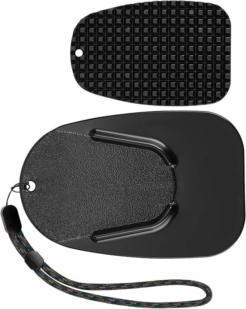 وسادة مسند للدراجة النارية - سوداء - لوحة دعم تساعد على ركن دراجتك النارية على أرض ناعمة وعشب الرصيف الساخن المضاد للغرق، عبوة من قطعتين (كبيرة + صغيرة)