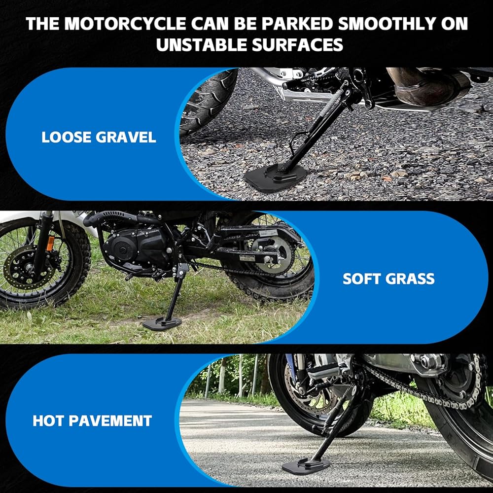🚩【ثبات معزز】اجعل دراجتك النارية لم تعد متذبذبة، وتوفر منصة جيدة لوقوف الدراجات النارية، وهي أداة رائعة لوقوف السيارات في الهواء الطلق على أرض ناعمة.