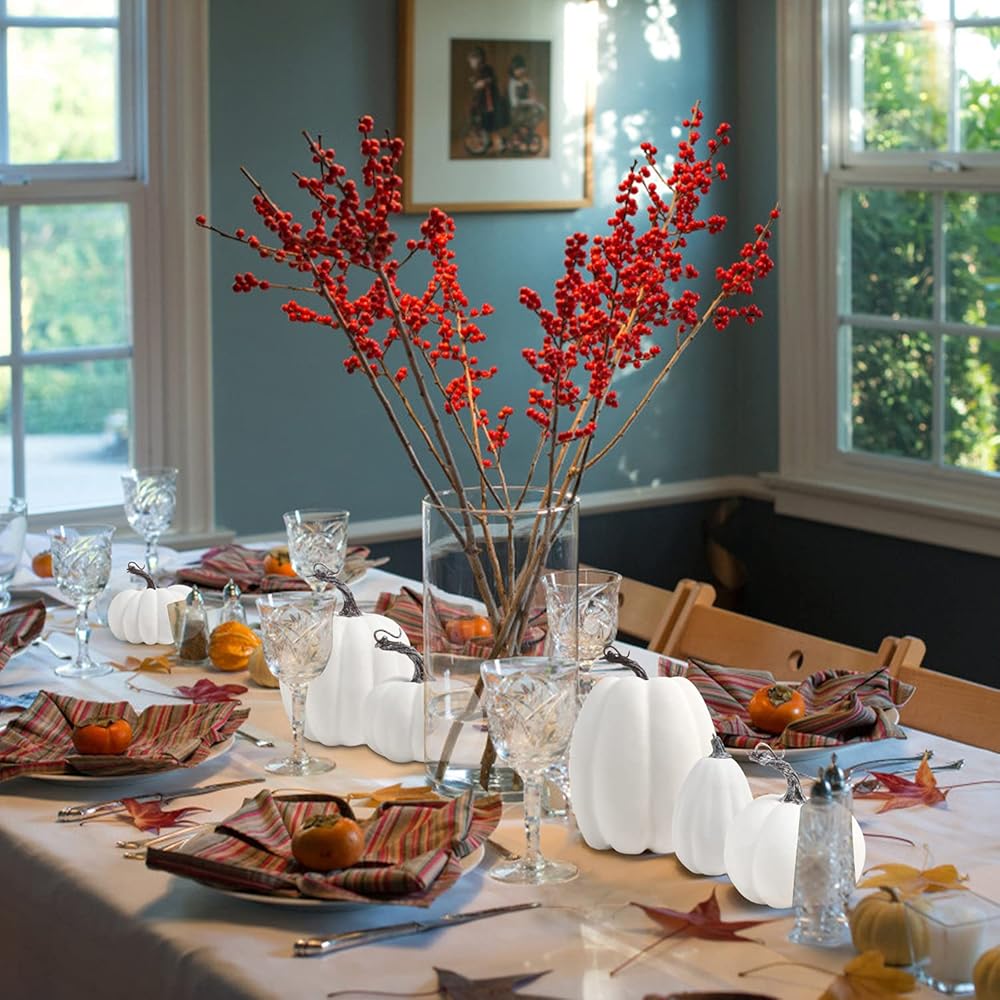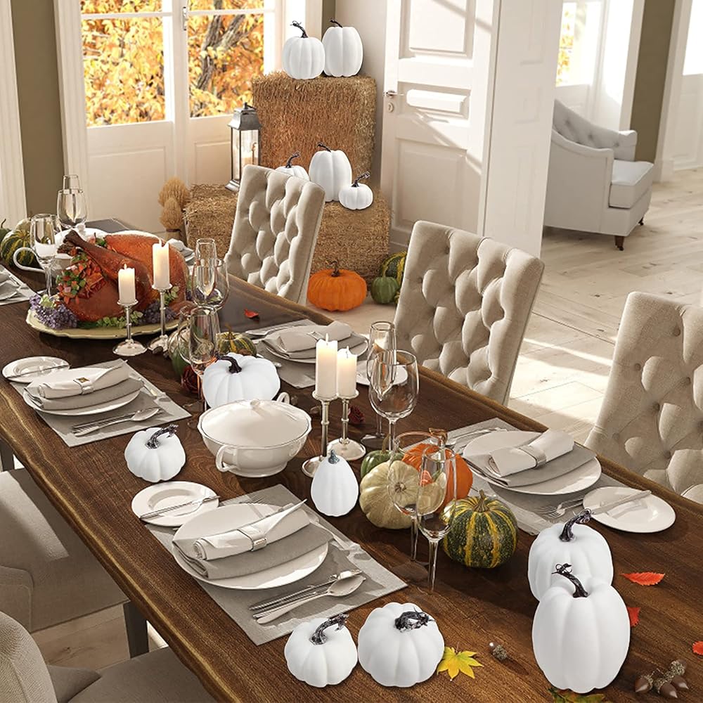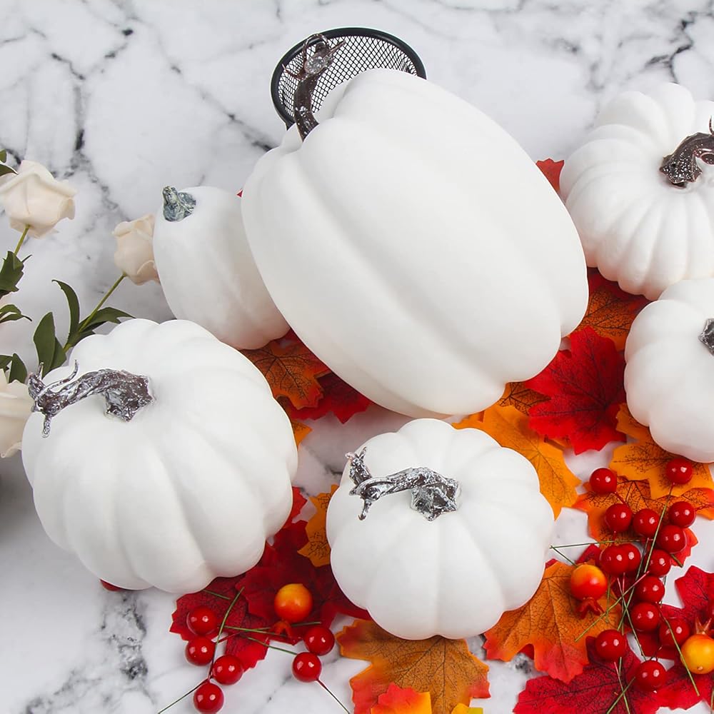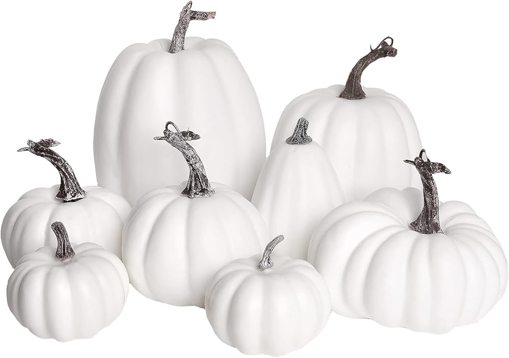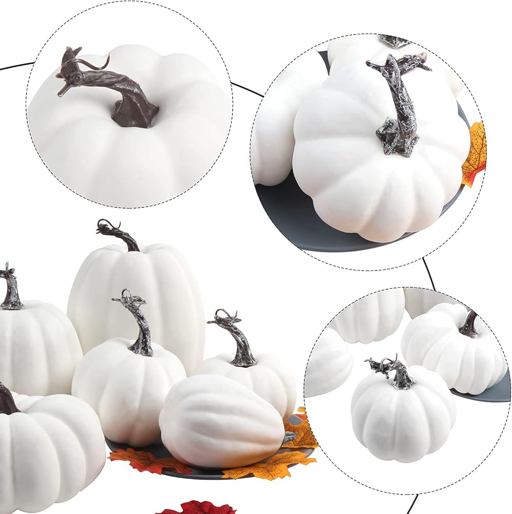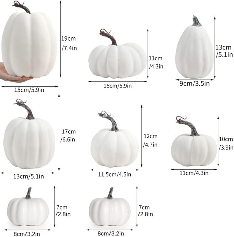 【عبوة قيمة】- سوف تحصل على 8 قطع بأحجام متنوعة من القرع الأبيض الاصطناعي. القرع كبير الحجم رائع لأي ديكور منزلي.